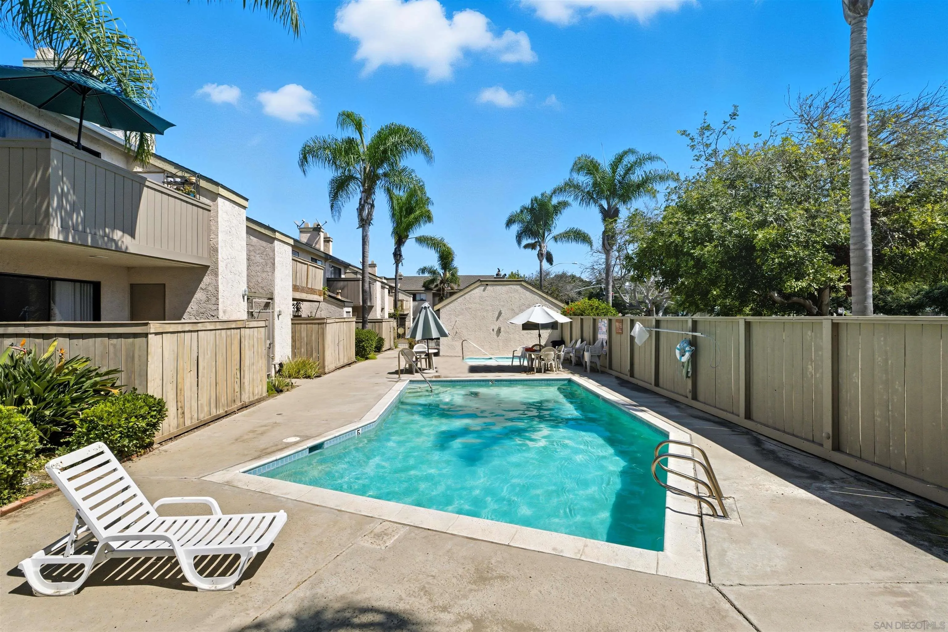 Highly updated cozy condo located in the City of San Diego neighborhood of Pacific Beach (PB). Located right off of Grand Avenue across the street from Mission Bay High School. The location provides close proximity & enjoyment of the attractions to PB without the hassle of traffic. Easy freeway access. Private patio & 2 assigned parking spaces: one covered & the one uncovered. Exterior storage located at the covered parking spot. Dual pane windows throughout & sliding glass door; very quiet when all are closed. Brand new luxury vinyl flooring installed in living room of March 2023. Fully functioning gas fireplace. Kitchen & bathroom boasts easy close drawers & cabinet doors as well as new GFCI's installed. Updated kitchen appliances. Plenty of interior closet space. Community laundry room with 3 washers & 3 dryers (Coin or App operated). Below ground pool and jacuzzi. Very quiet complex. Come see this PB Pearl before it’s picked up!