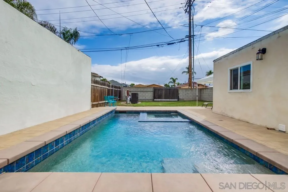 Welcome to Normal Heights lovely early century spanish style cottage with great quite location detached garage with existing electric & plumbing for possible ADU, studio or office sq. footage NOT included, large back yard, new sparkling pool & spa (2022) new pavers, grass area,back alley access new roof & paid solar (2022)new windows bali blinds (2022) ceiling fans tankless water heater & ABS plumbing (2019) new elec. panel (2022) newly remodeled bath (2022), wood burning fireplace.