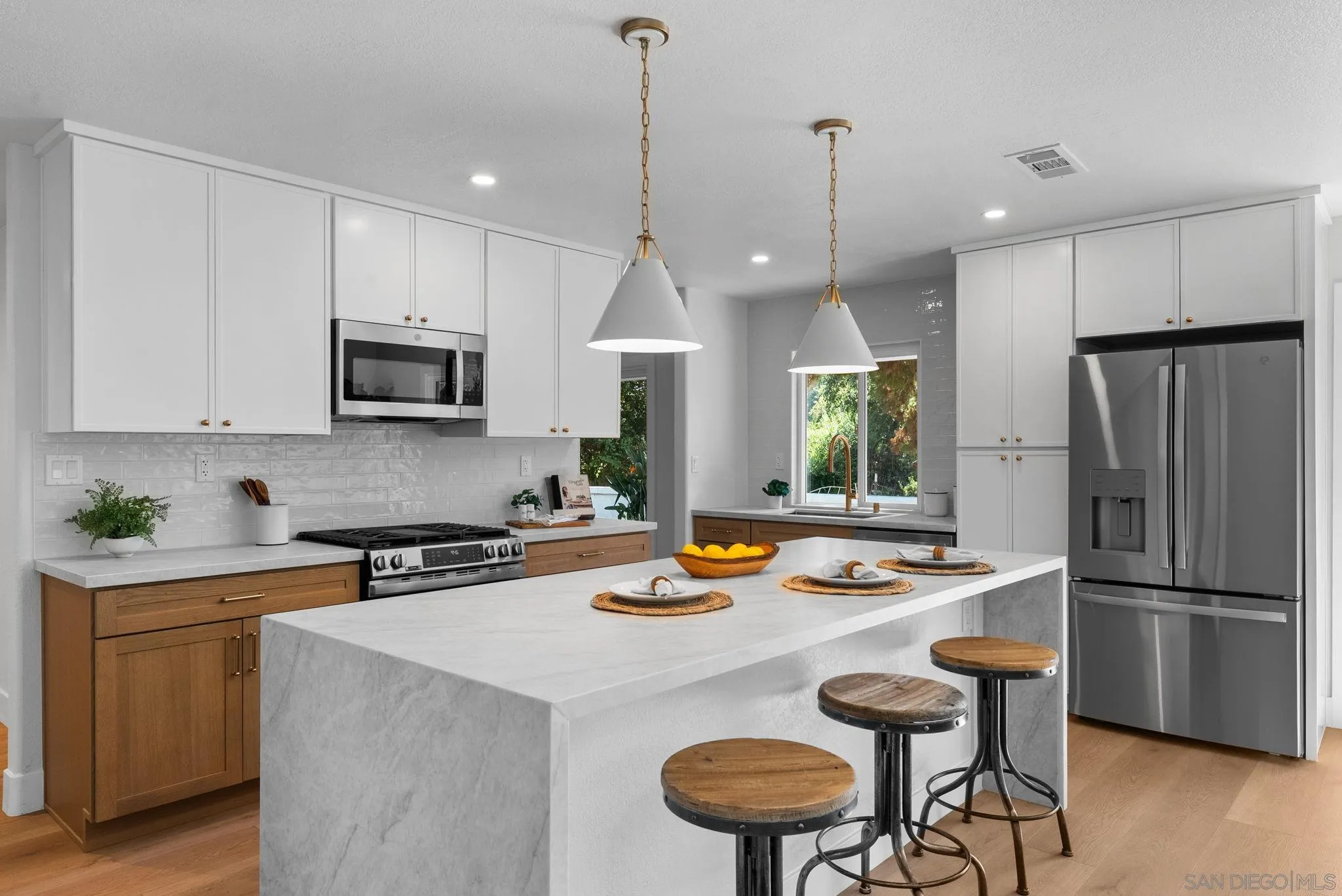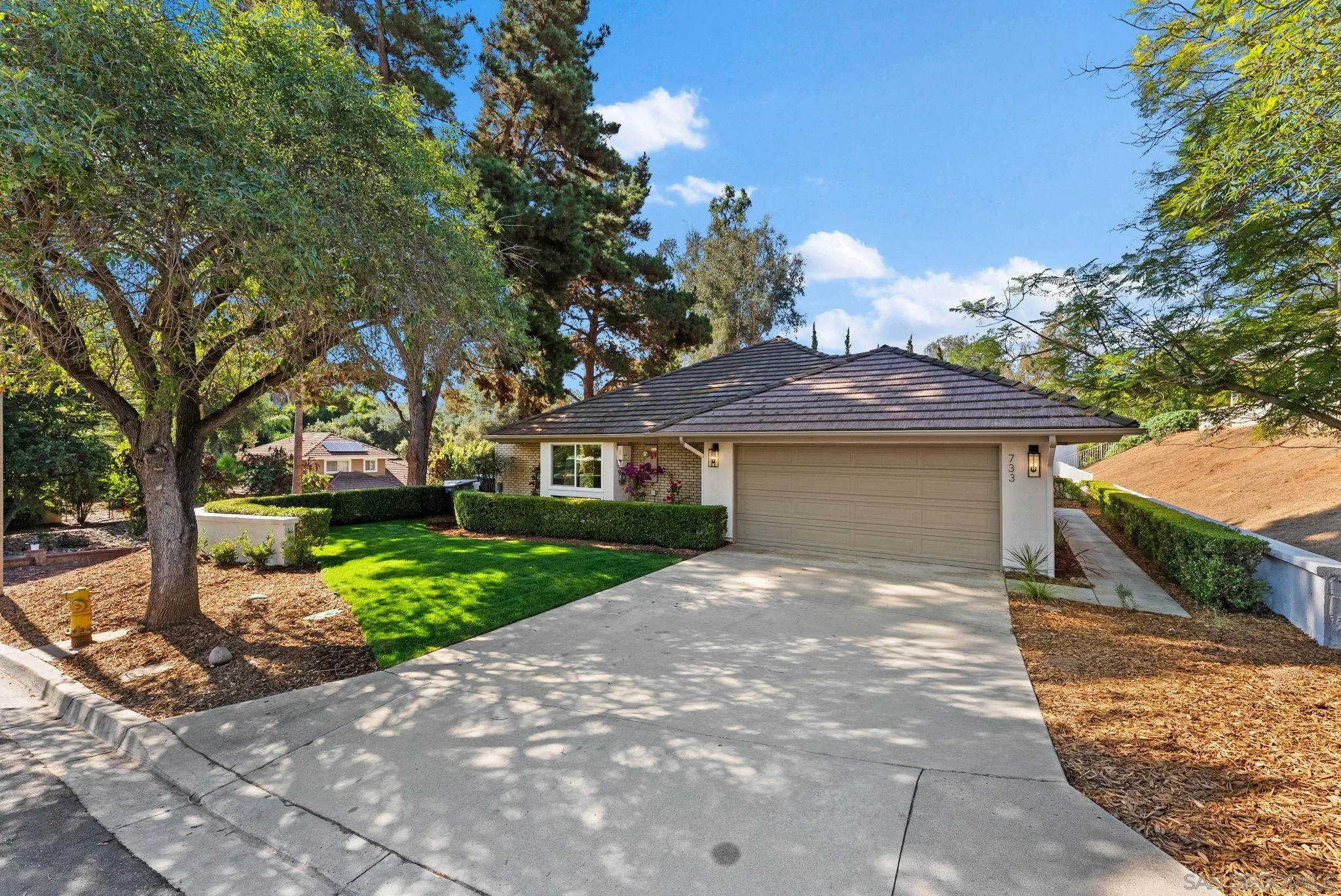 Welcome to this beautifully updated home blending modern finishes with timeless style. Solar is on a PPA program. Safe does not convey. Fresh exterior with new landscaping, planter boxes, and lush sod. Full exterior paint highlighted by a striking new craftsman-style double front door. Newer double-pane windows and sliding glass doors. New 4-ton condenser. Fresh interior paint and new LVP flooring throughout, complemented by new light fixtures, doors, and hardware. Stunning chef's kitchen offers a harmonious blend of white shaker and white oak cabinetry, complemented by honed Taj Mahal quartzite counters and a waterfall island. New stainless steel appliances, fixtures and sink. Enjoy the inviting living room that features a tiled hearth fireplace, perfect for cozy evenings. Retreat to the primary suite where a spa-inspired bathroom awaits. All vanities, tub and showers in all bathrooms have been updated. Every detail has been thoughtfully created to bring you a move-in-ready home that balances comfort, style and quality craftsmanship. Enjoy your large backyard that can accommodate more fruit trees and a vegetable garden.