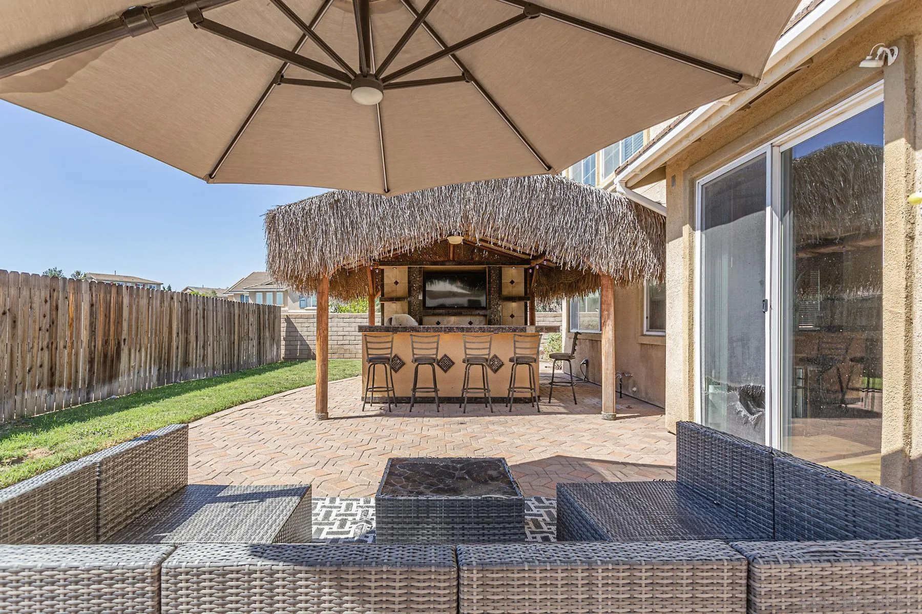 Discover this spacious 4-bedroom, 3-bath residence offering 3,137 sq ft of living space on a 7,840 sq ft lot in Murrieta. Built in 2006, this home features an open-concept layout with abundant natural light, newer flooring with oversized baseboards, granite countertops in the kitchen, recessed lighting, and a cozy fireplace in the family room. The oversized bonus/media room is perfect for movie nights or entertaining. 1 bedroom and full bathroom downstairs. The expansive primary suite includes dual sinks, a soaking tub, and a generous walk-in closet. Step outside to enjoy the backyard retreat, complete with an outdoor kitchen ideal for gatherings and entertaining. With a 3-car attached garage and no HOA and solar, this property blends style, comfort, and flexibility.