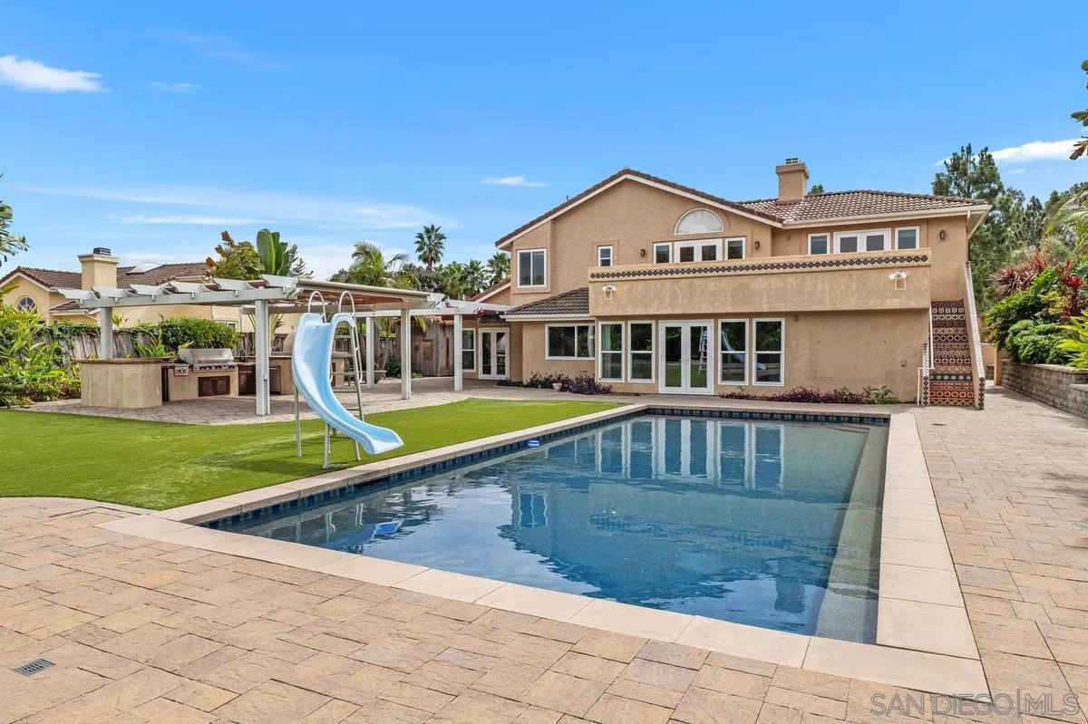 Exceptional opportunity to own a stunning home in one of Olivenhain’s most coveted neighborhoods. Set on an expansive lot, this private oasis features a sparkling pool, an inviting outdoor kitchen, dining area and pizza oven, mature fruit trees, and even your own tranquil pond with a cascading waterfall. The spacious floor plan offers 5 bedrooms, plus two additional rooms, along with a versatile office or craft room with its own private entrance, paid solar and so much more. A bocce ball court and sport court for pickle ball and/or basketball make this an entertainers dream. All this and just in time for the holidays, this home is located on the famed “Christmas Card Lane,” where the season comes alive with festive lights and community celebration.