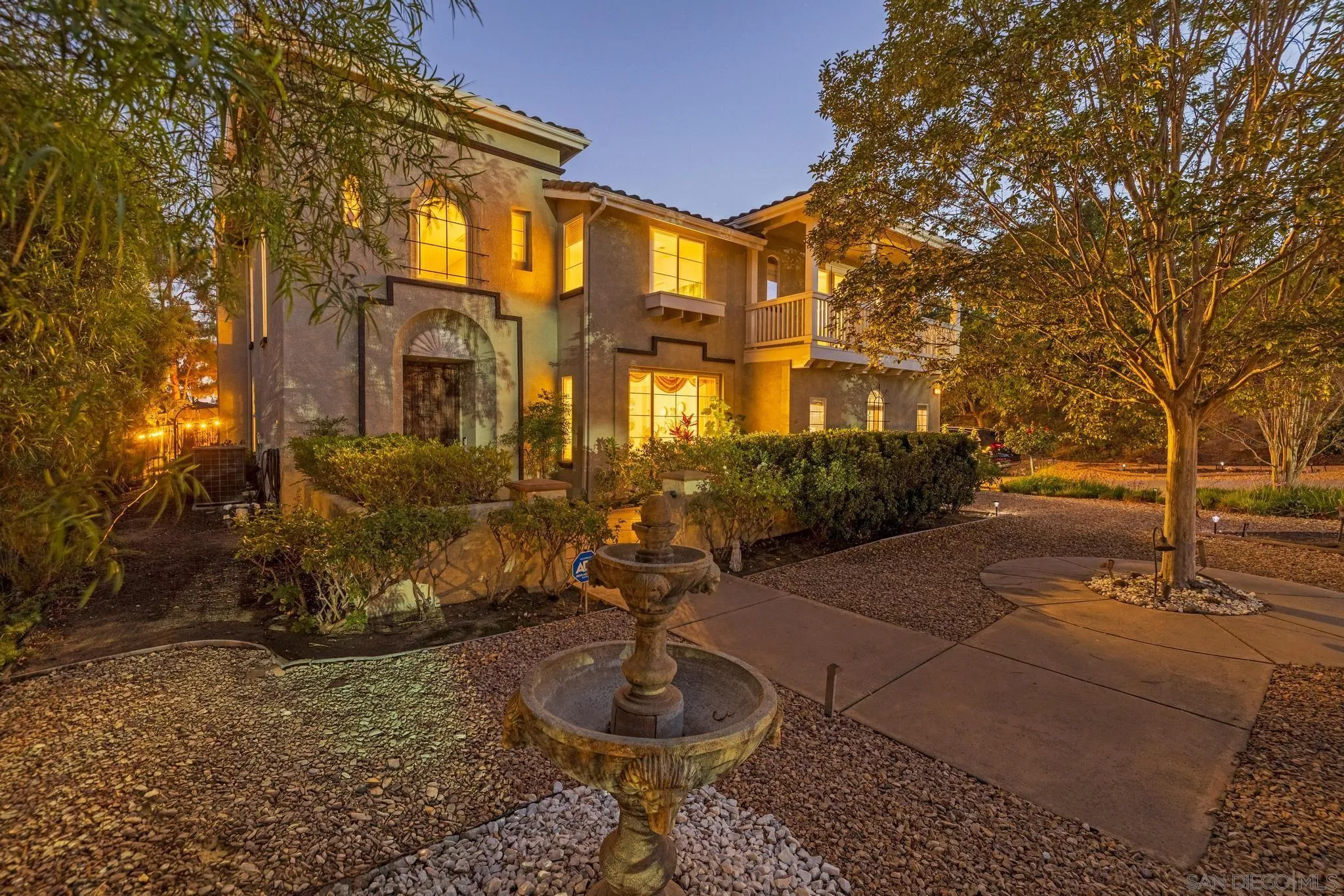 RESORT LIKE HOME in the prime South Escondido location that offers PANORAMIC VIEW and private solar heated swimming pool/Jacuzzi with waterfalls, built-in BBQ, Minigolf course, firepit, AND panoramic southern view! New furnace system. New exterior paint. Only a year old water heater, and fairly new hardwood flooring on the 1st floor! As you open the beautiful carved wood entry door, beautiful family room with backyard view greets you. A ground floor primary suite offers its own private entry and a full bathroom. Open concept kitchen with granite island with full wall cabinets. Up the classic winding staircase you will see a huge loft. Three secondary bedrooms upstairs, Jack and Jill, and 3rd full bathroom. The master suite features dual vanities, his/her walk-in closets, huge bathtub with jets. A Large deck offers picture like mountain views. California or Elfa closet systems in every closet and pull out drawers in cabinets. 4 car garage with epoxy flooring, and whole house sounds system. NO MELLO ROOS AND NO HOA FEES.