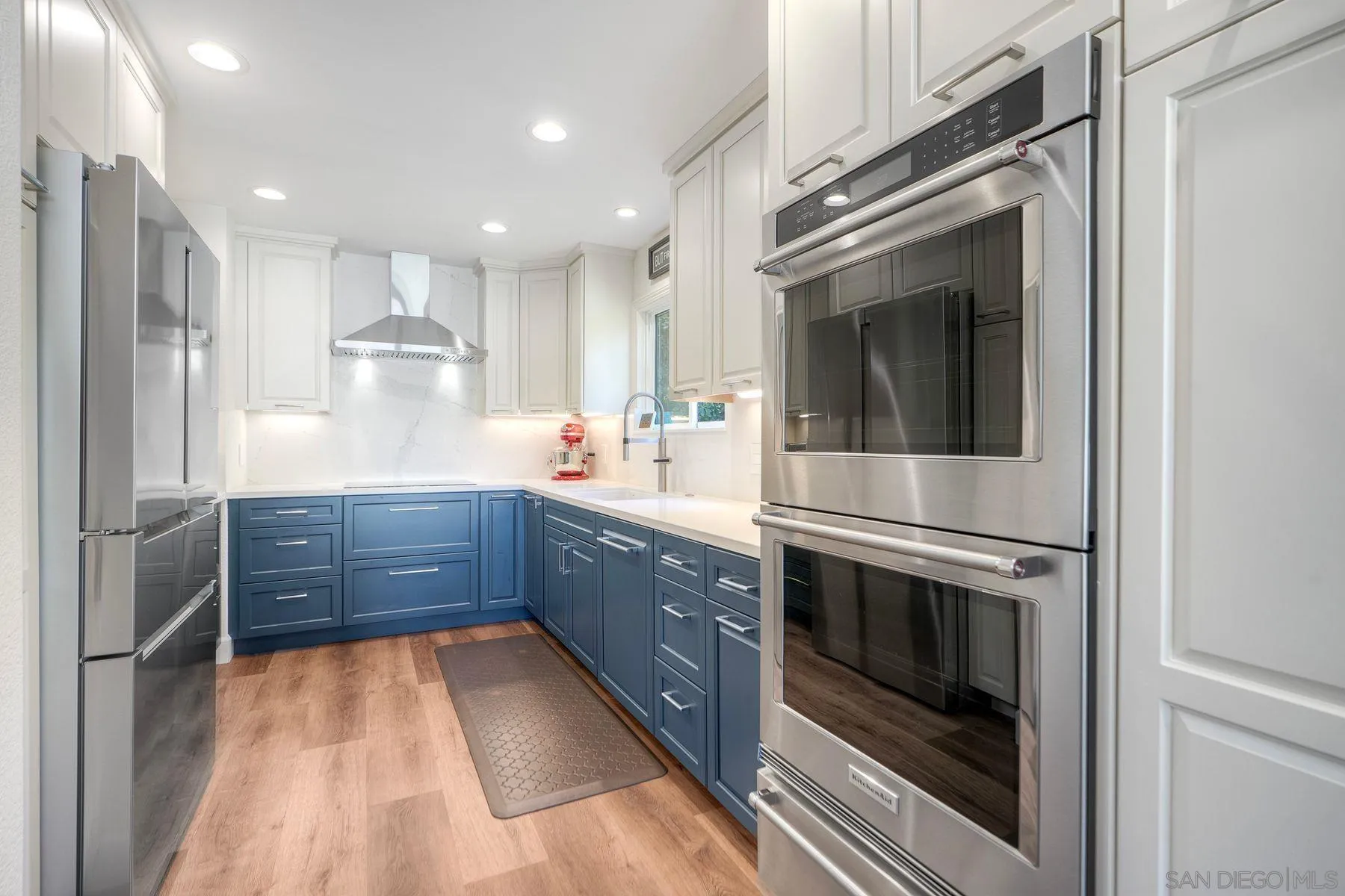 Fully Renovated Townhome in the Highly Desirable Kensington Park Villas Welcome to Kensington Park Villas, a serene, resort-style community tucked away in the heart of San Diego. This beautifully renovated 3-bedroom, 3-bathroom home spans approximately 1,875 sq. ft. and is one of the largest floor plans in the community. Thoughtfully upgraded from top to bottom, the home features a brand-new A/C system (installed in 2023), updated electrical throughout, a new water heater (2024), modernized bathrooms, and custom Elfa-built closets with interchangeable organizers. Perfectly positioned with no neighbors directly behind and scenic views of lush trees and a tranquil pond, this home combines privacy, style, and comfort in one stunning package. Step inside to a bright, open living space featuring tall, vaulted ceilings, modern finishes, and a newer fireplace that creates an inviting atmosphere. The gourmet kitchen is designed for both everyday living and entertaining, showcasing white and navy cabinetry, quartz countertops, sleek stainless-steel appliances, an induction cooktop, dual ovens, a warming drawer, and ample cabinet space with soft-closing features—including storage under the island. This home offers dual primary suites, one conveniently located on the lower level and one on the upper level. The downstairs primary suite features real bamboo wood floors, direct access to the private patio, and a luxurious ensuite bathroom with dual vanity sinks and a large walk-in shower. See Supplement =>