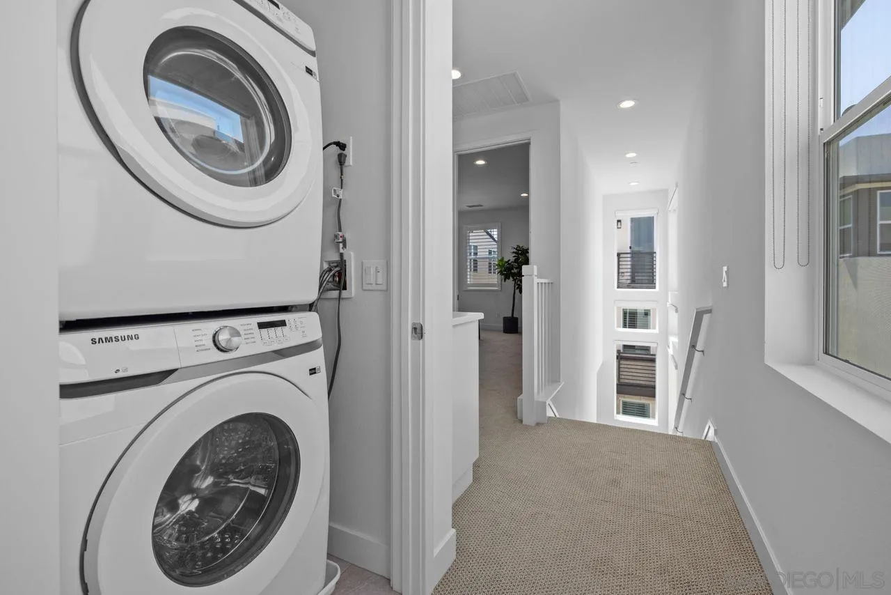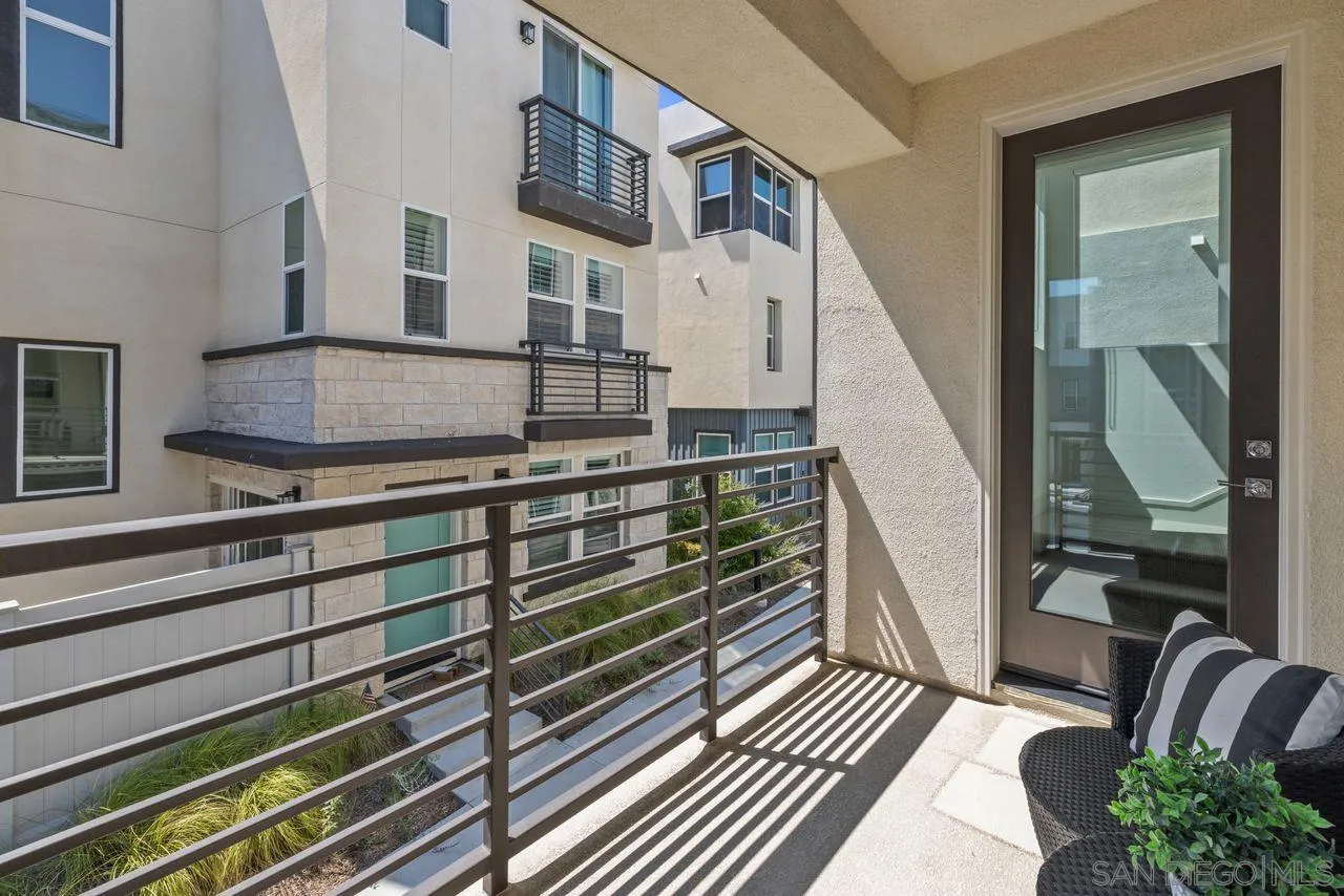 Experience elevated modern meets comfort living in the heart of Sorrento Mesa’s premier 3Roots Community. Ideally situated in the main enclave just moments from the central recreation and Fit Athletic Club, this stylish 3-bedroom home, with primary suite and secondary suite with their own ensuite bathroom, plus an open bonus room offers a perfect balance of design, comfort, and convenience across 1,875 sq ft. Chef-inspired kitchen with an oversized island flows seamlessly into the dining and living areas, while the covered balcony invites you to relax outdoors with morning coffee or sunset views. Elegant luxury vinyl plank flooring, dual-layer custom window treatments (remote-controlled for tall windows), and fully paid solar panels add both sophistication and efficiency. Residents enjoy exclusive access to Fit Athletic Heath Club resort-style amenities including pools, spa, saunas, fitness classes, scenic trails, and parks. Conveniently close to great schools, UCSD, leading hitech and biotech campuses, UTC, La Jolla, and Del Mar beaches, Torrey Pines Golf Course—this home offers an unmatched lifestyle in one of 3Roots’ most desirable locations.