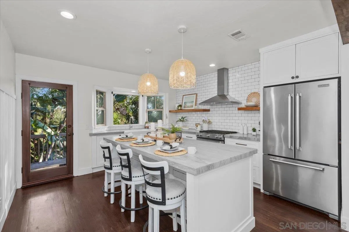 Seller will entertain offers between $993,900 - $1,043,900. Private sanctuary behind a gated, fully enclosed .55 acre property with a mature, abundant & diverse landscape; set on an elevated lot, with serene & lush views surrounding the home, bathed in natural light. Thoughtfully crafted, charming modern farmhouse with quality, designer updates: including a fully remodeled kitchen with high-end, marbled, matte finish quartzite countertops, an oversized dining island, subway tile backsplash & stainless steel appliances. Perfect for indoor/outdoor entertaining as the kitchen opens to a large deck with a tranquil setting. Updated bathrooms with elegant, marble countertop vanities & a marbled tiled shower in the primary suite. Timeless touches with stained, real hardwood floors; exposed wood beams. Other updates include OWNED SOLAR; Central HVAC; and a BONUS finished shed (not included Sq.Ft.) with windows, utility & new laminate wood floors: perfect for an outside office, playroom or yoga/fitness space. A homesteader's dream, perfect for gardening, raising chickens & animals, brimming with fruit trees: lemon, orange, grapefruit, pomegranate, dragon fruit & more! Newer hot water heater, electrical panel, vinyl windows, and updated attic insulation & ducting. Multiple, usable areas to expand & build ADUs for additional living or income. This unique beauty is the lifestyle upgrade you’ve been searching for!