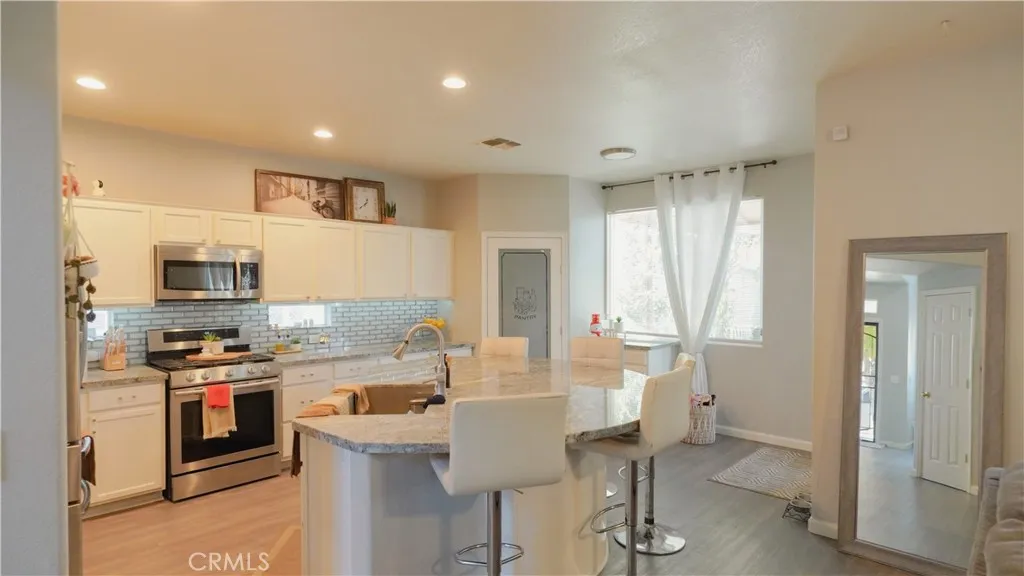 Nestled in a prime location near local parks (dog, golf course), this stunning 5-bedroom, 3 bathroom home is a blend of elegance and modern convenience. Surrounded by picturesque paths that wind through natural river features and lush landscaping. It's a perfect haven for outdoor enthusiasts. Inside, you'll find a thoughtful layout, including an office/gym bonus room and a convenient full bathroom downstairs. The recently updated kitchen is a showstopper, boasting an elegant glass backsplash, under-cabinet lighting that creates a warm ambiance, a spacious walk-in pantry, and a striking 8-foot granite slab island with multiple power outlets - ideal for family gatherings or daily use. The family entertainment room is wired for ceiling speakers, setting the stage for movie nights, and features a sleek, modern fireplace that adds a touch of sophistication. This welcoming neighborhood also offers a connected community feel with an active group chat to foster communication and camaraderie among neighbors.