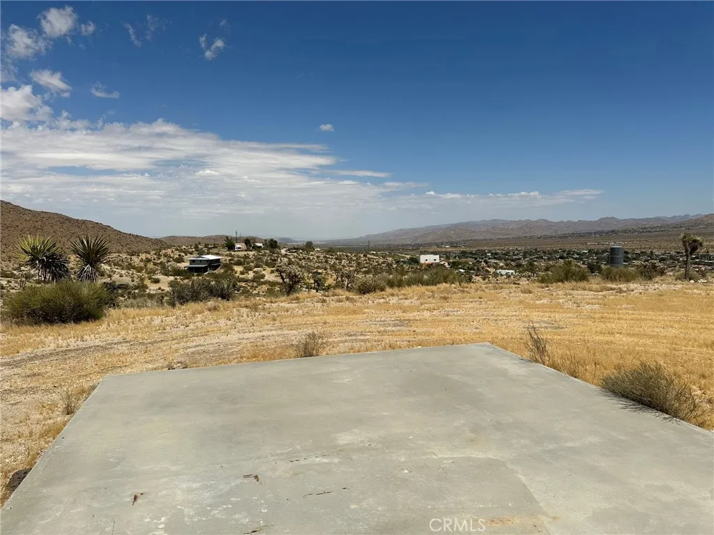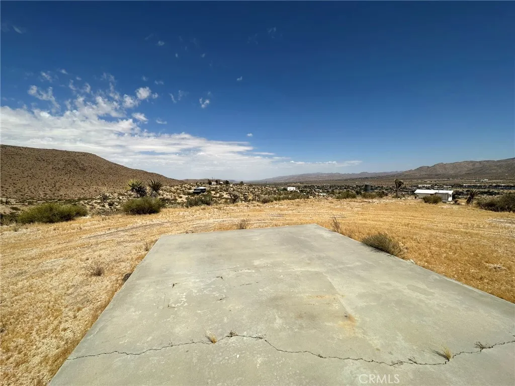 Unleash your imagination and create an extraordinary luxury vacation retreat with this remarkable land offering, boasting million-dollar views that will leave you breathless. Nestled atop a picturesque hill, this expansive 5-acre parcel presents multiple ideal sites for building your dream getaway. Multiple possible sites to build. 5 acres on the top of the hill with panoramic views of the valley, Joshua Tree National Park, the Mesa's and the city lights. There is a slab from a homestead cabin and the tax rolls still show the 200 odd sq. ft. from the cabin. Water and Electric are nearby. Please call for directions.