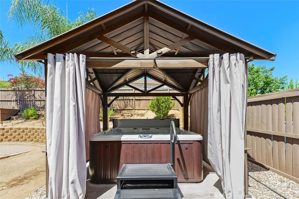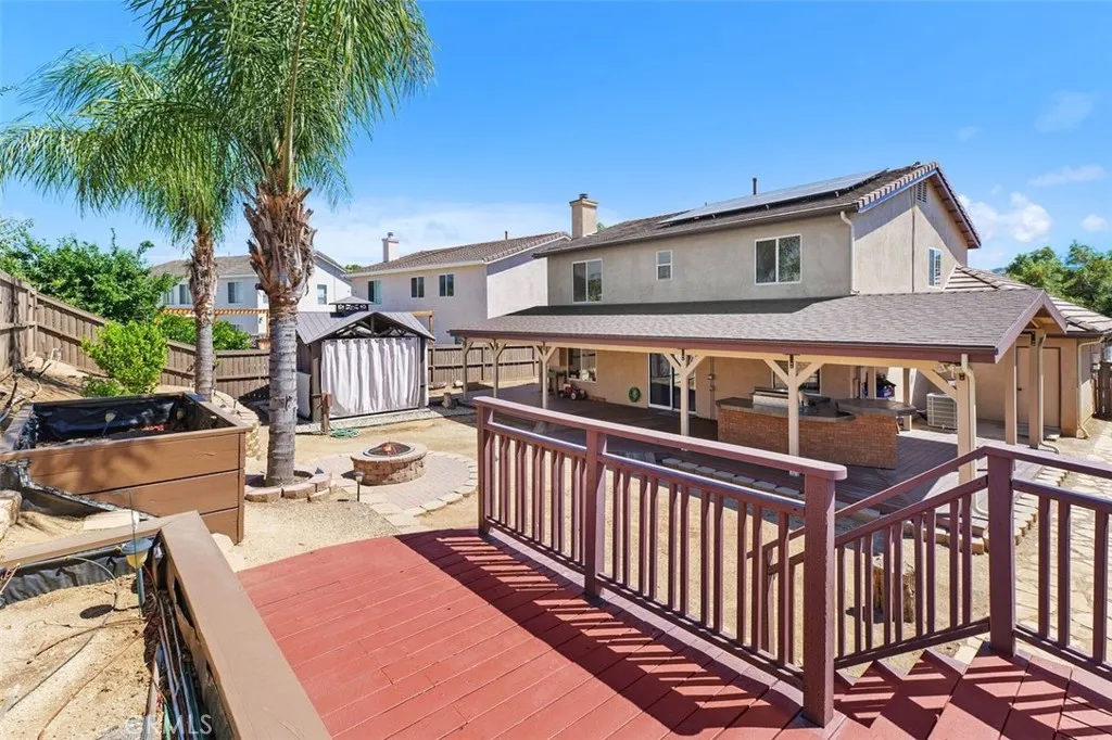 Lightening only strikes once and this is your opportunity to grab it! Location! Location! Location! Located in Southwest Wildomar, right next to Murrieta, this adorable home will knock your socks off as you will be in awe of the floorplan. A large living area welcomes you into this lovely home, with luxurious lush carpet flooring, that is well maintained. The light & bright Kitchen adjoins the spacious Family Room, lots of windows for natural light, cozy fireplace in the family room, to keep you warm in the winter, tons of cabinets and a huge walk-in pantry, leading to the 3 car garage, that has Epoxy flooring and tons of built in cabinets. Upstairs you will find the Primary Bedroom, a luxurious bathroom, large walk - in closet, dual sinks, separate tub & shower & soaking tub. The additional 2 bedrooms are upstairs & spacious as well, both with walk in closets and ceiling fans, plus an upstairs loft! Additional amenities include custom patio cover, beautiful complete custom kitchen, perfect for outdoor entertaining, lemon, lime, cumquat fruit trees, paid off Solar, newer AC and furnace, covered gazebo with spa, ceiling fans, misters, security system by ADT, and oversized shed. This home has low taxes, NO HOA & is located within easy freeway access, & close to shopping & restaurants and the acclaimed Wine Country. Theres no place like home & this home awaits your arrival. We welcome your consideration of ownership in this outstanding charming and gem of a place to call home. Hurry on this one!