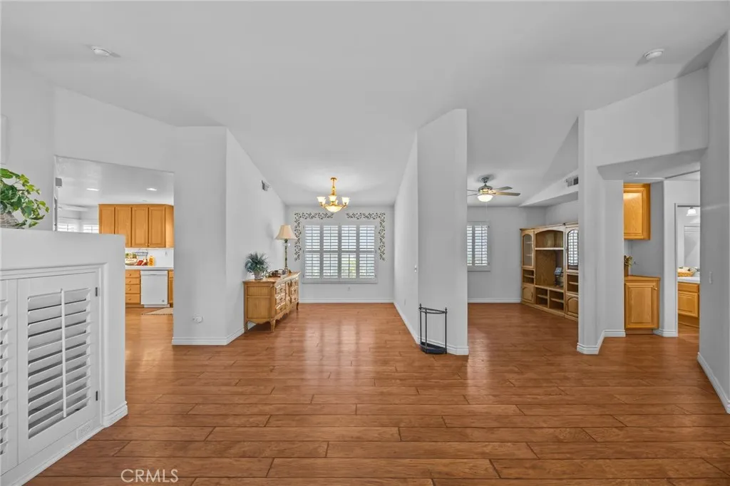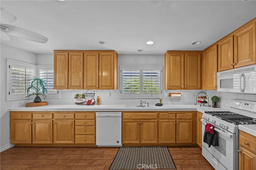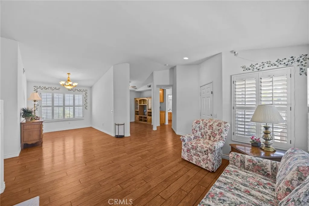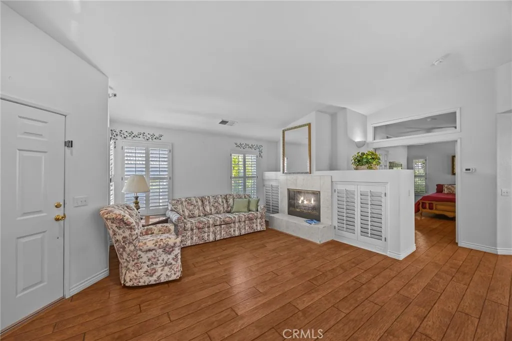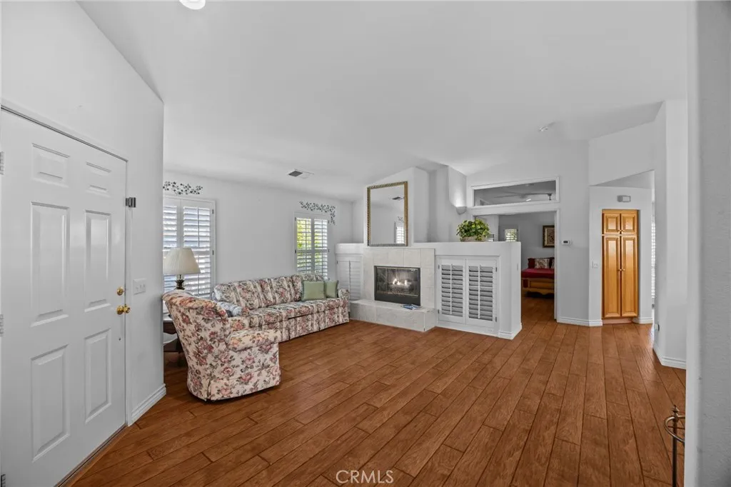 Welcome to this 3-bedroom, 2-bath home with optional office area, offering 1263 square feet of comfortable living space, ideally situated on a corner lot that backs to a peaceful greenbelt in the highly desirable Colony 55+gated community in Murrieta. This single story floor plan offers an inviting open-concept layout featuring a cozy living room fireplace, shutters and durable laminate flooring throughout. The kitchen provides generous cabinetry and counter space, perfect for both everyday meals and entertaining. The primary suite includes a walk in closet and private bath, while the additional bedrooms offer versatility for guests, and office or hobbies. Step outside to a private backyard retreat with no rear neighbors-enjoy serene greenbelt views and privacy, and premium corner lot. Residents of The Colony enjoy vibrant, resort-style amenities such as a championship 18-hole golf course, clubhouse, swimming pool and spa, tennis and pickleball courts, fitness center, and a wide range of social activities. The HOA maintains front yard landscaping and provides 24-hour guarded gate security for worry-free living. This home offers the perfect blend of comfort, privacy, and active adult living in one of Murrieta's most sought-after 55+ communities.