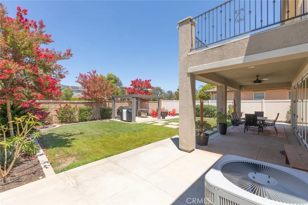 Popular floorplan located in the gated community of Roripaugh Ranch offering over 2,800 sq. ft. with 3 bedrooms + a flex space/office downstairs that can be used as a bedroom, 2.5 baths, and a spacious loft. The open-concept layout downstairs features a large kitchen, dining area, and great roomideal for entertaining. A 16-foot bifold door expands the great room into the covered California Room, blending indoor/outdoor living. The kitchen is upgraded with shaker cabinetry, quartz counters, subway tile backsplash, and stainless steel appliances. At the front of the home, you'll find a private flexspace, bedroom/office with a walk-in closet and a nearby powder room. Upstairs includes a large loft, two secondary bedrooms, full bath, laundry room, and an impressive primary suite with stunning northern mountain views. The primary bedroom opens to a large private deck for enjoying panoramic scenery. Windows have been updated with modern shutters and solar is paid off!! The backyard is thoughtfully landscaped with multiple areas to entertain, including a 12x12 gazebo and covered California Room. No rear neighbors and plenty of space for a future pool. Residents enjoy resort-style amenities: clubhouse, 24/7 fitness center, pool, spa, tennis and basketball courts, private walking trails, and a large central park. Low tax rate and located within the award-winning Temecula school district.