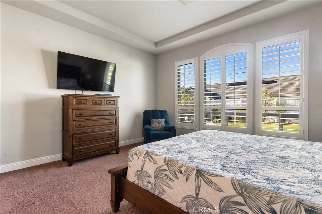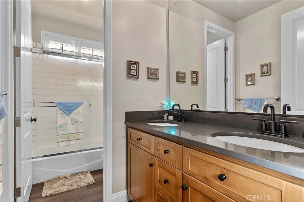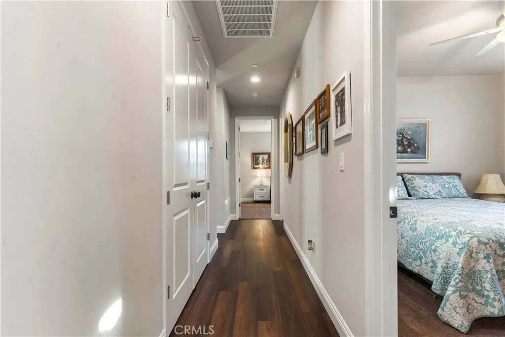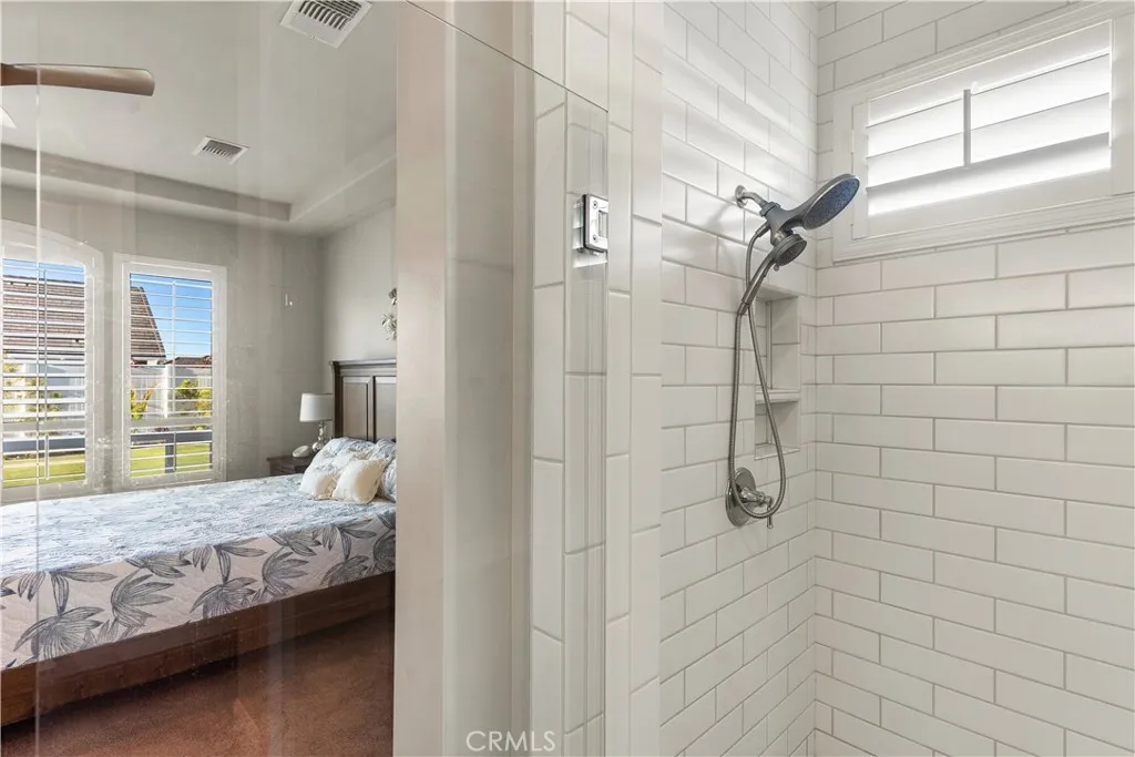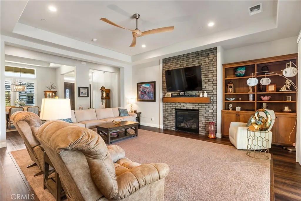 Exceptional Gaskill Rose custom home nestled in the Highgate Shires at Seven Oaks, boasting double-gated security. This immaculate split-wing residence presents an enticing blend of luxury and functionality, offering a pristine opportunity to acquire a virtually new property. Revel in the tranquil allure of the tropical oasis backyard, complete with a mesmerizing pool featuring a cascading waterfall. Inside, discover elegant vinyl plank flooring throughout high-traffic areas, complemented by plush carpeting in bedrooms and the living room enclave. The gourmet kitchen showcases a vast quartz-topped island, seamlessly flowing into the inviting living space adorned by a floor-to-ceiling brick fireplace. Benefit from the owned solar system for enhanced energy efficiency. Indulge in the convenience of pre-installed wood shutter window coverings and other upscale finishes. Experience the epitome of modern living in a meticulously crafted home.