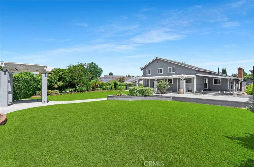 Situated on a sprawling, nearly 12k sq ft corner lot, this 5 bedroom, 3 bath home in the Villa Park HS district offers a fantastic floorplan with plenty of space for entertaining, both inside and out. Enjoy double-height cathedral ceilings, a unique sunken conversation area around the living room fireplace, beautiful wood floors, and a dining room that opens to a newly built deckideal for alfresco meals. The spacious chefs kitchen features upscale cabinetry, granite countertops, and opens to both the dining room and family room, creating a seamless flow. The family room leads to the expansive backyard, which is beautifully landscaped and offers ample room for a potential pool, ADU, play area, or garden retreat. Just off the family room is a hallway leading to a private bedroom, a full guest bath with a shower, and access to the two-car garage, which includes built-in storage, washer/dryer hookups, a utility sink, and a door to the side RV parking area. Upstairs, youll find four additional bedrooms. Updated bathrooms include a full hall bath with a tub. Bonus feature: a laundry chute from the second floor linen closet! The spacious primary bedroom includes double closets and opens to a charming front balconyperfect for your morning coffee. Great neighborhood, ideal for entertaining, multi-gen living, or adding future value, in a highly sought-after school districtthis home truly has it all. Come take a look!