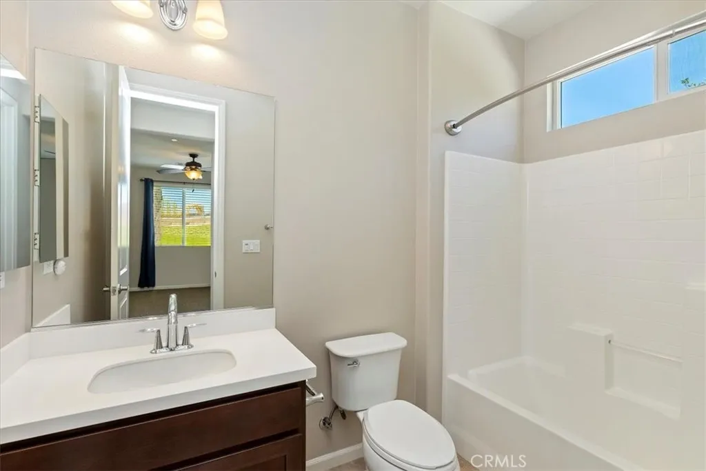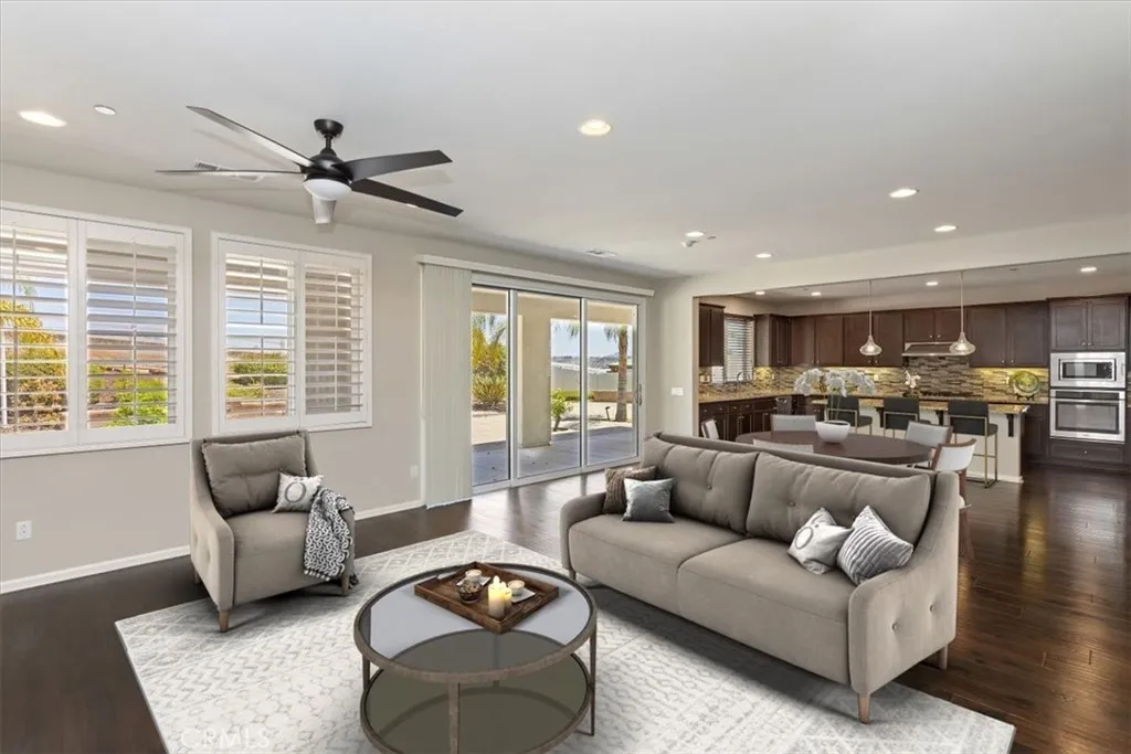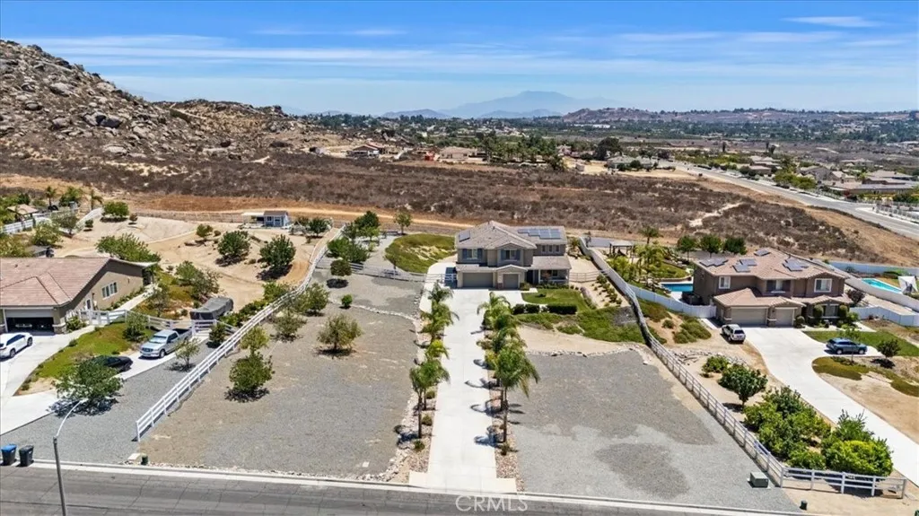 Im Gorgeous inside! Nestled at the end of a quiet and secluded cul-de-sac in the highly desirable Bridle Creek neighborhood of Woodcrest, this stunning home offers the perfect blend of privacy, space, and upscale living. Situated on a sprawling one-acre lot, the property boasts a long private driveway leading to a beautifully maintained residence featuring 5 bedrooms, 4.5 bathrooms, and 3,787 square feet of thoughtfully designed living space. A formal entry with elegant wood flooring sets the tone, leading to a sophisticated dining room and a convenient butlers pantry. Natural light fills the home through plantation shutters, highlighting the open-concept layout. The upgraded kitchen is a chefs dream, complete with granite countertops, a custom tile backsplash, stainless steel appliances, a walk-in pantry, breakfast bar, and a sunny breakfast nook. The kitchen flows seamlessly into the inviting living room, with easy access to the expansive covered patioan extension of your living spaceperfect for entertaining or simply relaxing outdoors. The backyard is beautifully landscaped with mature palm trees, fruit trees, and elegant pavers, fire pit creating a serene and private retreat. A downstairs guest bedroom with a full bath offers comfort and privacy for visitors. Upstairs, you'll find three generously sized guest bedrooms with private baths, a spacious bonus room ideal for a home office, gym, or playroom, and a luxurious ensuite primary bedroom with His & Her Closets. The Ensuite bathroom featuring dual sinks, an upgraded separate shower, and a deep soaking tub. Additional