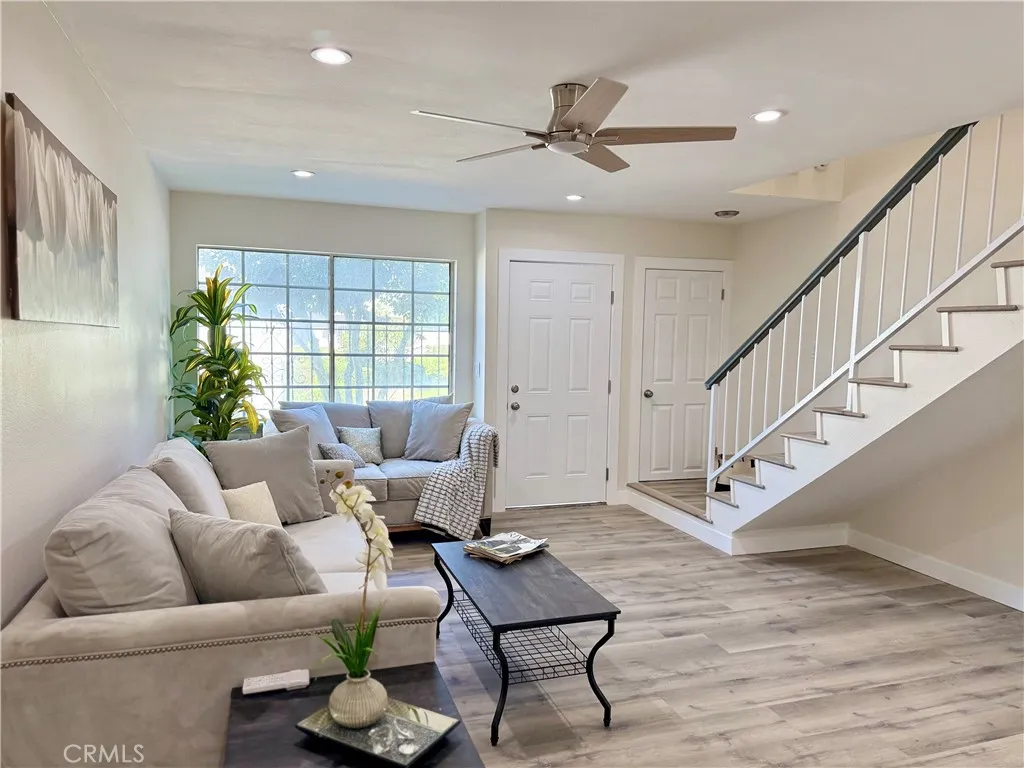 Back on market! Buyer could not perform! Welcome to this beautifully remodeled townhouse-style condo, nestled within a secure gated community in the heart of Compton. This spacious two-bedroom, one-and-a-half-bath home features a thoughtful layout, with both bedrooms and the full bathroom located upstairs, and a convenient half bath on the entry level. Step inside to luxury wood-style vinyl flooring and recessed lighting throughout. The fully renovated kitchen boasts brand-new shaker cabinets, quartz countertops, and stainless steel appliances including a refrigerator, stove, microwave, and dishwasher. Just off the kitchen and dining area, enjoy a private patio with a storage room, perfect for relaxing or entertaining. Upstairs, you'll find the laundry room for added convenience. This home also features a brand-new HVAC system providing central air and heat ideal for year-round comfort. The community is beautifully maintained, with lush landscaping visible right from your front door and windows. Dont miss your chance to fall in love with this move-in-ready gem!