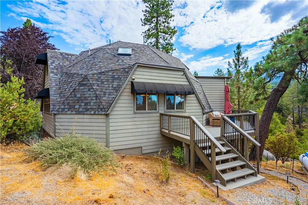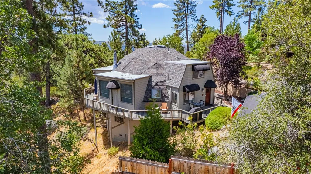 Escape to the Mountains: Dome Style Retreat with Sweeping Views Tucked away just 5 minutes from Idyllwilds charming village, this one-of-a-kind dome-style home offers breathtaking views of the surrounding mountains and valley, including Mt. San Jacinto. Designed to maximize space and natural light, the open-concept two-story layout lives larger than its square footage suggests, featuring oak hardwood floors, plush carpeting, and a beautiful rod iron staircase that adds character and warmth. Step outside to enjoy the serene wrap-around porch, private gazebo with fire pit, and paid-off solar system making it the perfect blend of comfort and sustainability. Downstairs includes a bonus room ideal for a studio, office, or guest space (not included in SQFT). Whether you're looking for a peaceful full-time residence or a tranquil secondary home, this property radiates cozy mountain charm.