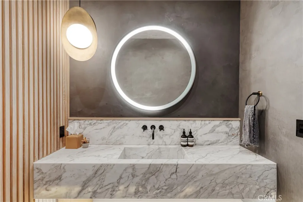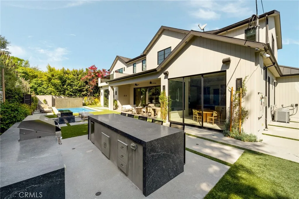 Welcome to this exquisite 5 bedroom, 7 bathroom estate, where modern luxury meets effortless sophistication. Nestled in prime Encino Hills on a tranquil cul-de-sac, this home is zoned for the highly sought after Lanai Elementary School. Thoughtfully designed with a timeless aesthetic, it features Venetian plaster, warm wood floors, custom finishes, and an open layout with soaring ceilings that enhance the sense of space and grandeur. The seamless indoor-outdoor flow leads to beautifully landscaped grounds, complete with a fire pit, BBQ island, and a sparkling saltwater pool and spa with a waterfallan entertainers dream. The primary suite is a true sanctuary, offering a private fireplace, an oversized balcony, and a custom walk-in closet with an island. The spa like bathroom is designed for relaxation, featuring a soaking tub, dual sinks, and an enclosed glass steam shower. Each secondary bedroom is ensuite, boasting soaring pitched ceilings and elegant finishes. Designed for both luxury and convenience, this home includes a state-of-the-art movie theater, a stylish bar and game room overlooking the pool, and two laundry rooms. The chefs kitchen is fully equipped with top-tier stainless steel appliances, a Wolf gas range, Sub-Zero refrigerator and freezer, double ovens, double islands, a walk-in pantry with an extra refrigerator, and a butlers pantry. The formal dining room is a showstopper, adorned with designer wallpaper ceilings and complemented by a temperature-controlled wine cellar. Additional features include a Control4 Smart System, designer light fixtures, custom ca