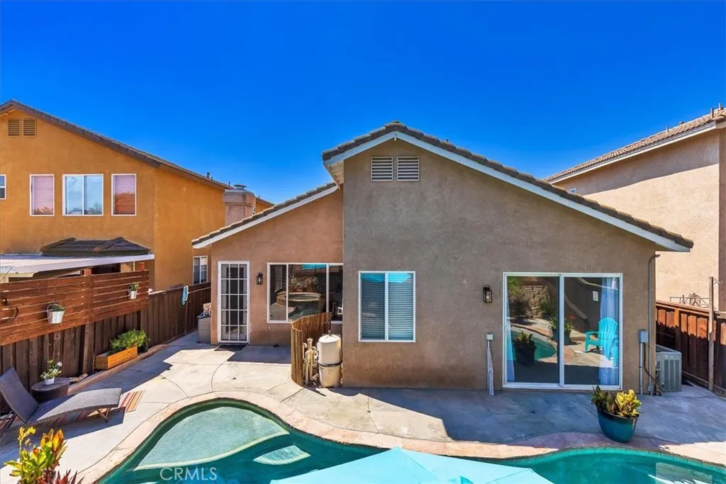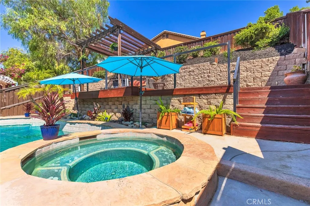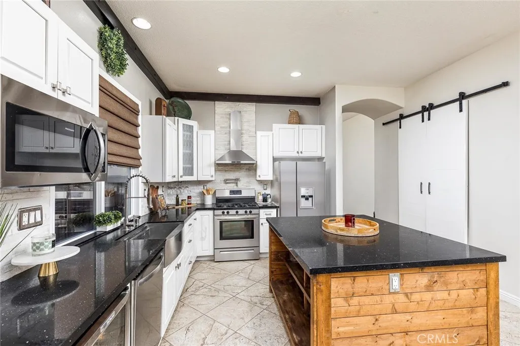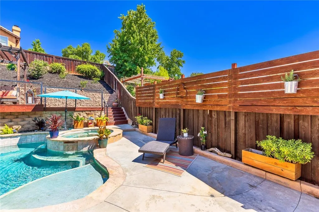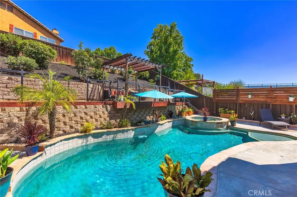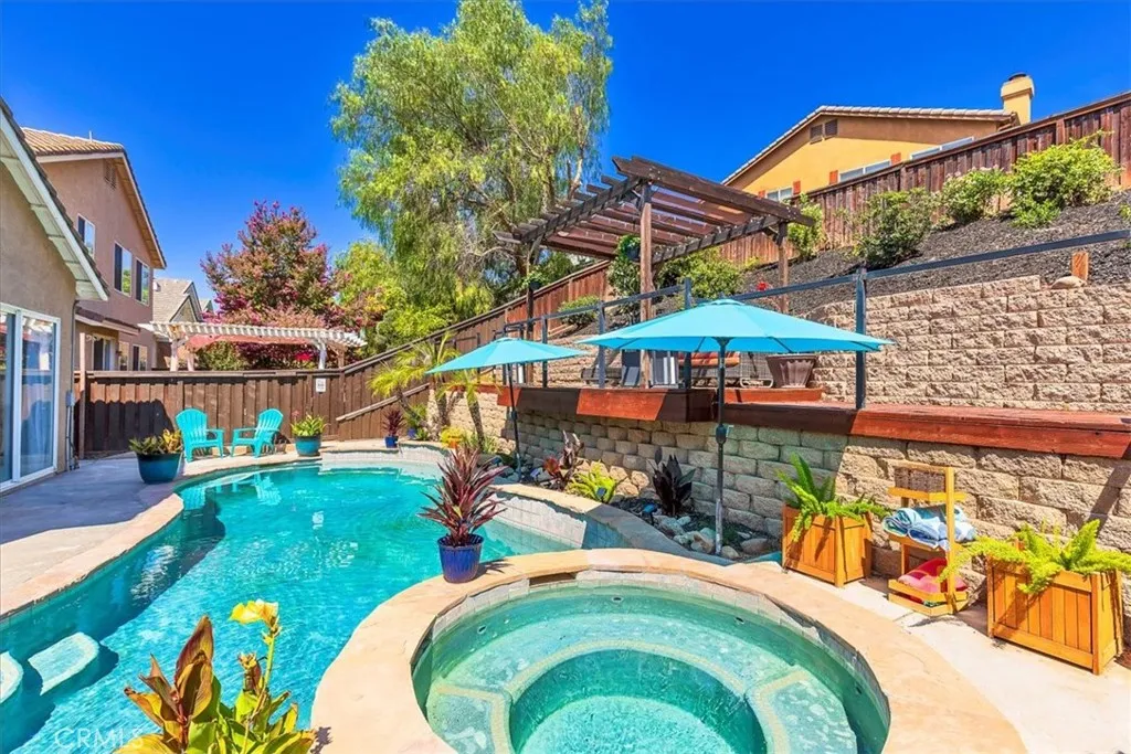 BACK ON THE MARKET NOW WITH LOWER INTEREST RATES! SINGLE STORY POOL HOME in the HEART of Temecula! This lovely home has been completely remodeled with a bright kitchen, large shiplap island for entertaining, barn door pantry, custom wood beams, Roman shade, wine fridge, stainless steel hood, stainless steel appliances and farm sink, Italian stacked stone backsplash, pot filler and sleek black quartz countertops. Enjoy the tranquility of a formal living and dining room that offers some separation for those cherished Holiday dinners or quiet conversations away from the crowd. Open concept Family Room/ Dining area is open to the adjacent kitchen where everyone gathers. Step outside into your entertainers backyard with lagoon style POOL AND SPA and unique upper deck that overlooks the pool area. Set up your projector and watch movies under the stars in the privacy of your own oasis! 4 bedrooms and 2 completely remodeled bathrooms! Secondary bathroom has been upgraded to a beautiful neutral color scheme with glass subway tile backsplash, subway tiled tub/shower, new paint, new bathtub, new toilet, new vanity, new mirrors, new lighting, new flooring and new fixtures. Primary suite is generous in size and has a SEXY SPA-like bathroom with modern yet neutral decor, elegant Italian marble tiled tub and shower area, floating soaker tub, large floating black vanity with gold accents, mirrors, lighting, new flooring, new toilet and fresh paint. Be the first to bathe in this luxurious bathroom after a relaxing day sitting pool side. This beautiful home is carefully crafted with 10 foot