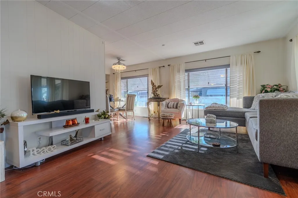 Welcome to Sun city Mobile Estates. Senior living at its best! 55+ gated community pool area, spa, clubhouse located at front of property. Mobile home has been painted exterior. Open floor plan, sliding door leading to your front porch nice space for family gathering. Living room and dining are perfect size. Gas stove top/Refrigerator / washer- dryer/. Master bedroom has a walk-in closet; master bath has a walk-in shower. 2nd bedroom has a Jack and Jill restroom, Laminate floor. Home is located near - Bank, grocery stores, other restaurants. 215 Freeway access is literally around the corner. Home is ready for its new owner.