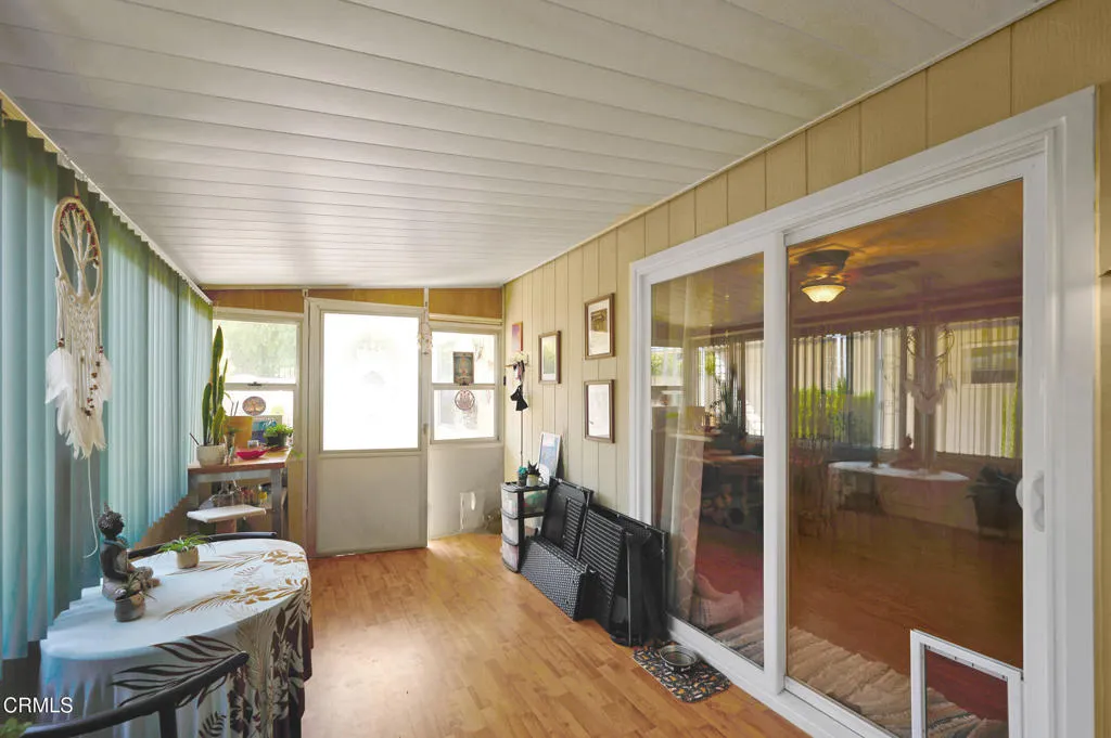 Welcome to 56 Don Antonio - a charming 2-bedroom, 2-bath mobile home nestled in the exclusive gated Ojai Villa 55+ community, offering stunning mountain views and a scenic walking path right behind the home. The open floor plan features vinyl-insulated windows, an updated kitchen, and a spacious primary suite with two closets and a dual-sink vanity. The guest bedroom enjoys its own separate bathroom for added privacy. Additional highlights include central A/C, a private backyard with breathtaking views, back gate access to RV storage, nearby bike trails, two large storage sheds, and more. This is Ojai living at its best!