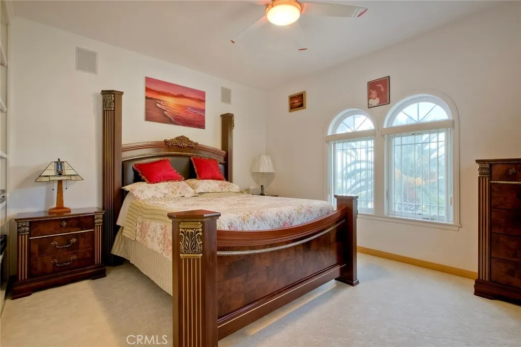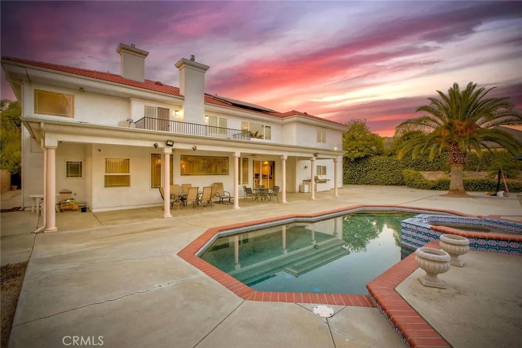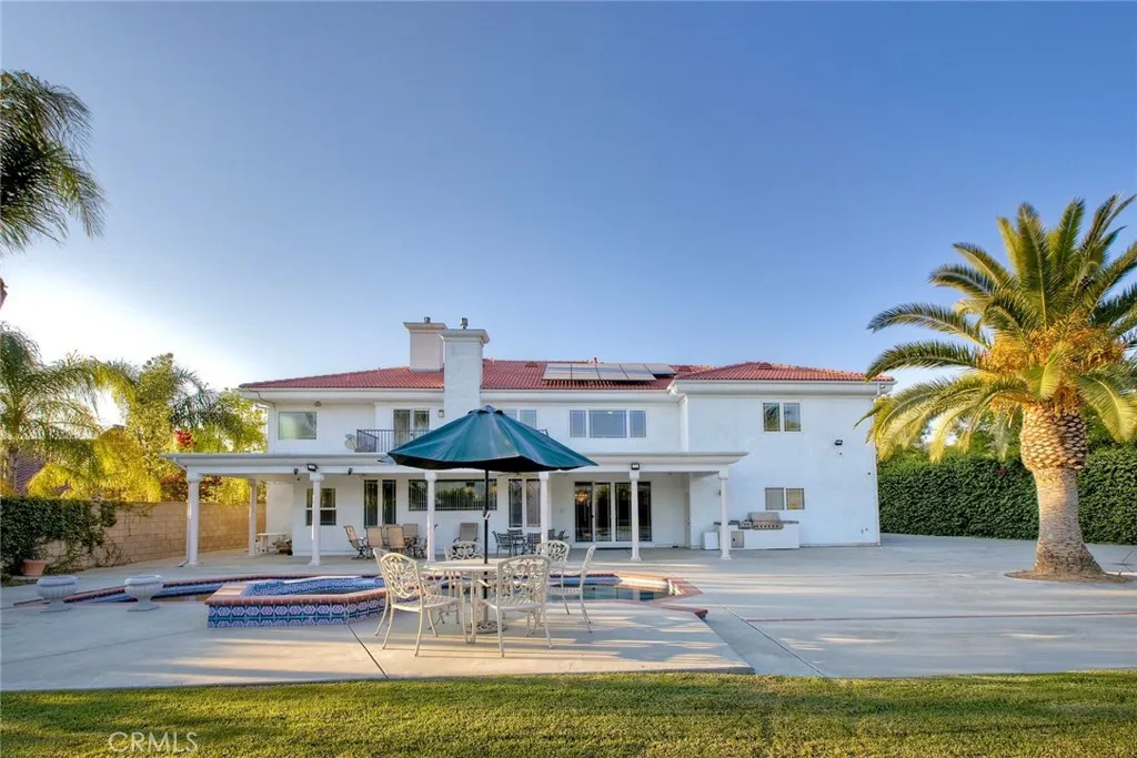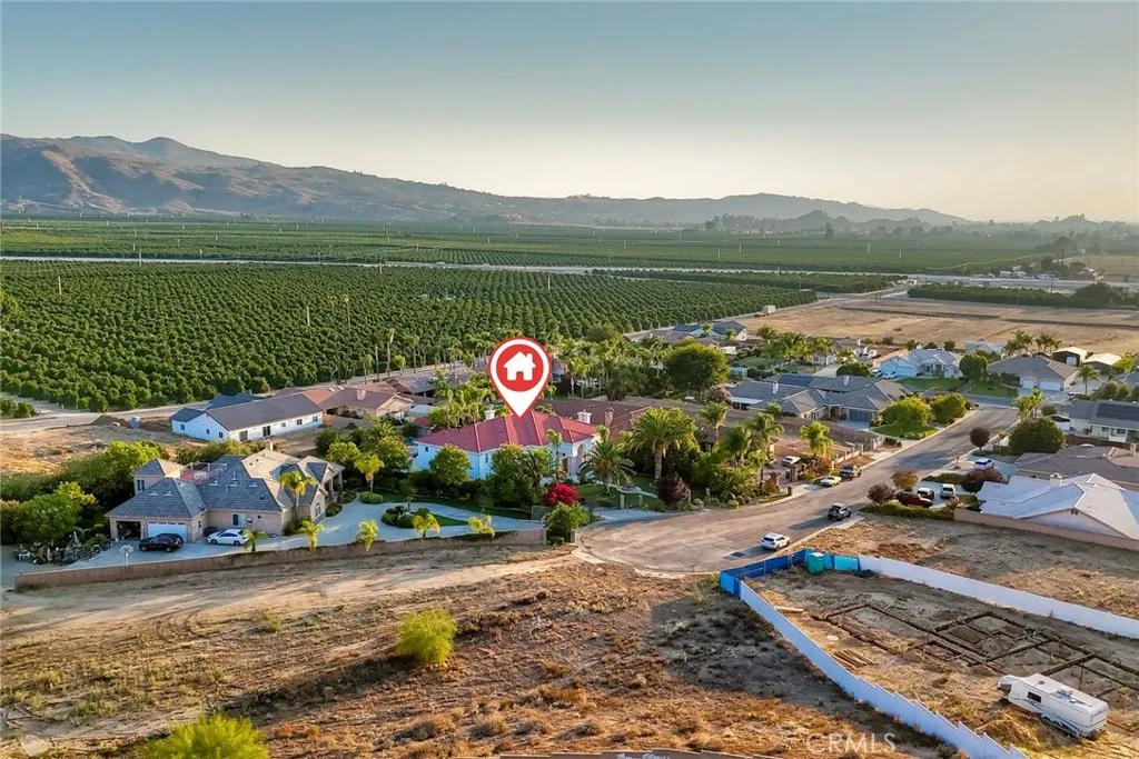The Majestic Beauty of 44273 French Circle, Hemet A Home of Elegance, Luxury, and Innovation. This spectacular 5-bedroom, 5-bathroom estate boasts 5,749 square feet of luxurious living space on a lush half-acre lot adorned with exotic fruit trees and stately palms. Every detail has been crafted for both comfort and wow factor, redefining what it means to live well. From the curb, majestic palm trees and mature landscaping create a warm, private welcome. Built to the highest standards with 2x6 exterior framing and extra insulation, the home offers enduring comfort, energy efficiency, and exceptional quiet. Step inside to soaring ceilings and abundant natural light, especially in winter months when sunlight fills and warms the home naturally. At the heart of the home lies a chefs dream kitchencrisp white cabinetry, gleaming granite countertops, and stainless steel appliances. Highlights include a professional-size refrigerator, built-in trash compactor, and an open flow to the expansive living area. Here, one of three fireplaces adds warmth, while a built-in surround sound system sets the tone for movie nights or gatherings. The spacious family room, complete with wet bar and natural light, is ideal for entertaining. Fireplaces in the family room, master suite, and living room ensure cozy comfort throughout. Upstairs, a large library with a built-in theater sound system offers a multifunctional space for work, study, or play. Modern conveniences include a whole-house intercom, security camera system, central vacuum, and surround sound throughout. A laundry chute leads to the