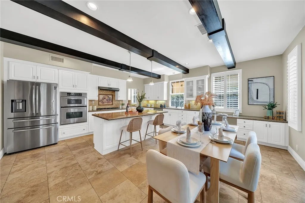 Step inside this elegant 4-bedroom home, featuring a cozy loft ideal for a home office or reading nook, all within a secure gated community. Abundant natural light pours through plantation shutters, highlighting soft neutral tones and warm wood accents throughout. The inviting living room showcases plush seating, layered textures, and tasteful dcor, creating a cozy yet sophisticated ambiance. At the heart of the home, the chefs kitchen shines with white cabinetry, granite countertops, and a spacious center island perfect for both everyday living and entertaining. Overlooking the dining area, it opens seamlessly to the outdoor patio through double glass doors, offering an airy flow ideal for gatherings. The expansive primary suite impresses with elegant ceiling and wall details, complemented by a custom-built his-and-hers closet for ultimate convenience. Located in a vibrant neighborhood with award-winning schools, this home offers the perfect balance of style, comfort, and functionality a place where every detail is designed for exceptional living.