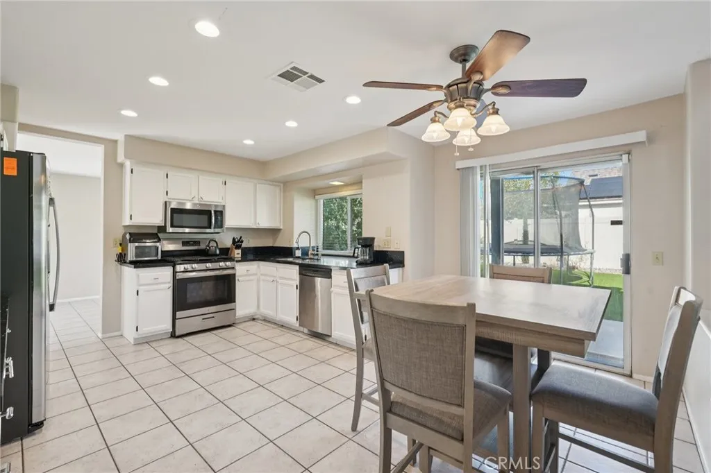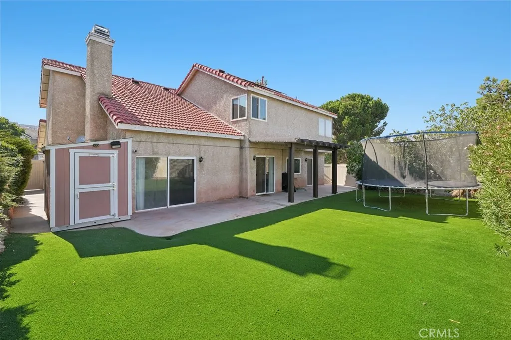 Upgraded Home in the Heart of Rancho Vista! Welcome to this immaculate 4-bedroom, 3-bathroom home perfectly situated in the highly desirable Rancho Vista community. Thoughtfully upgraded throughout, this residence features beautiful granite and marble countertops and tile flooring throughout the first level. The remodeled kitchen boasts stainless steel appliances and energy-efficient windows, seamlessly flowing into a cozy family room with a charming fireplace. Enjoy formal living and dining spaces ideal for entertaining, while each bedroom includes ceiling fans for added comfort. The spacious master suite features its own fireplace, a walk-in closet, and a luxurious ensuite bathroom with a remodeled separate shower and soaking tub. Additional highlights include plantation shutters, a lush turf backyard with new vinyl fencing, a paid-off solar panel system for energy savings, and a 3-car garage. Located in the Westside School District, this home is within walking distance to Marie Kerr Park and the Palmdale Amphitheater, and just minutes from shopping, the mall, dining, entertainment, and freeway access. This move-in ready home truly has it all a must see!