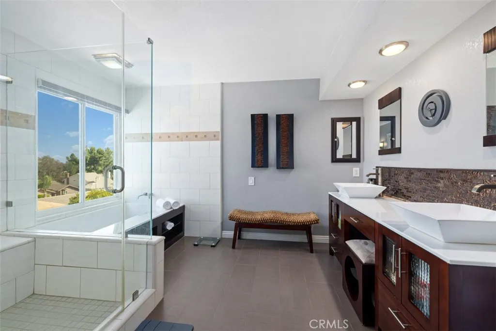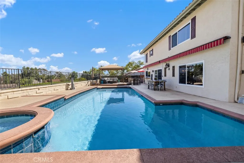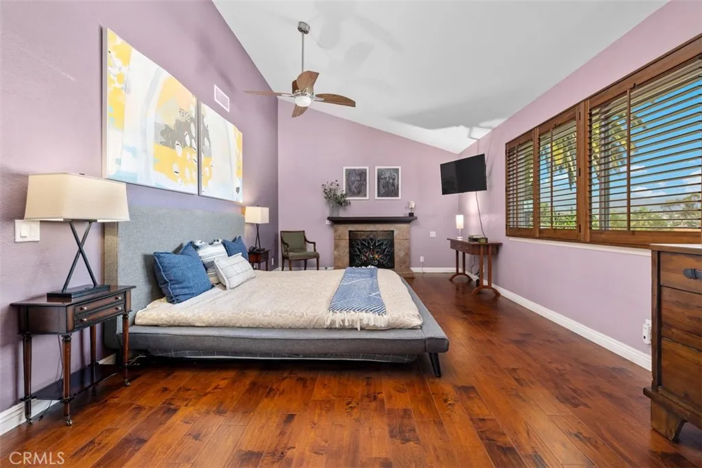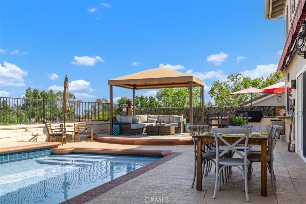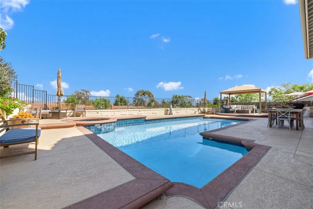 a great opportunity to own a stunning Mediterranean-style home nestled in the coveted Madrid Del Lago neighborhood, perched above the hills and the beautiful Lake Mission Viejo. Set on an expansive lot, this home showcases a shimmering pool and spa, along with breathtaking, unobstructed views of the Saddleback Mountains and twinkling city lights. The backyard is a true entertainers paradisecomplete with a built-in BBQ, multiple seating areas, motorized awnings, and a charming gazeboall designed to maximize the spectacular views. A SPECTACULAR VIEWS OF THE 4TH OF JULY FIREWORKS RIGHT FROM YOUR OWN BACKYARD. Inside, the inviting layout makes you feel at home the moment you enter. The formal living and dining rooms create a warm welcome, while the gourmet kitchen boasts designer granite countertops, elegant cabinetry, a breakfast nook, and a convenient wet bar. The family room, featuring a cozy fireplace and custom built-ins, offers both comfort and serenity with picture-perfect vistas. The primary suite is a luxurious retreat, highlighted by a fireplace, wood flooring, plantation shutters, mirrored closets, and a beautifully remodeled spa-inspired bath. Three additional rooms provide flexibilitytwo generously sized rooms that share a remodeled bathroom, plus a fourth room thoughtfully designed as a home office with built-in cabinetry. Additional features include REPIPING WITH PEX, a WATER SOFTER SYSTEM, DUAL PANE WINDOWS AND DOORS, NEW POOL EQUIPMENTS, RAIN GUTTERS, CEDAR LINED STORAGE. A spacious side yard also offers the potential for RV parking. As a resident, youll enjoy