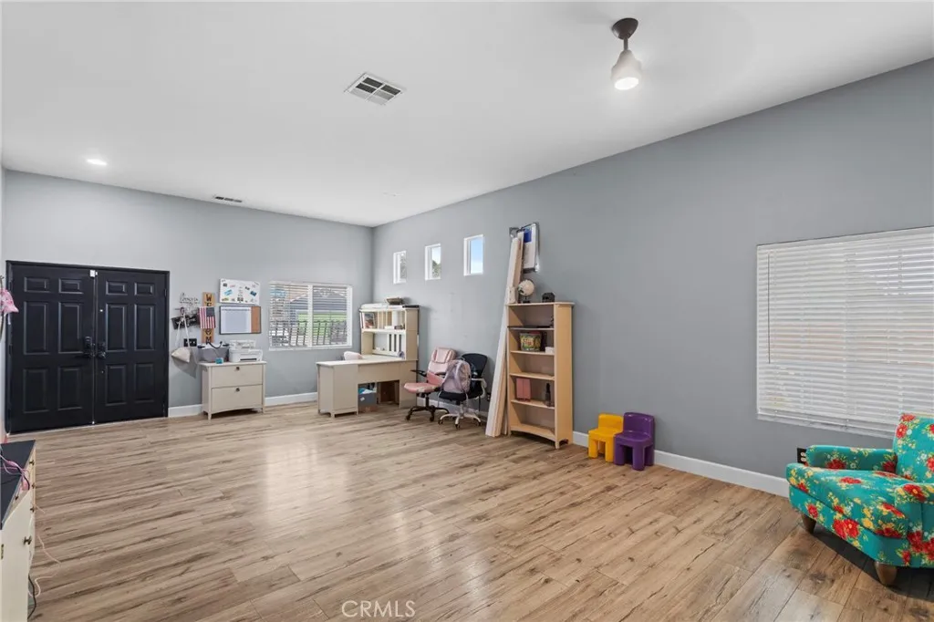 Another great opportunity in the beautiful city of Hemet, where space, style, and comfort collide in perfect harmony! Sitting proudly on a desirable corner lot, this freshly updated home offers 2,663 sqft of beautifully designed living space on a generous 7,405 sqft lot. From the moment you walk through the front door, youll fall in love with the expansive living room, seamlessly flowing into the open-concept kitchen and a family room complete with a charming gas fireplace, the perfect setting for entertaining or relaxing nights. The kitchen is a true standout, featuring white wood cabinets, abundant storage space, and a functional layout that makes meal prep a breeze while keeping the heart of the home stylish and welcoming. Downstairs, youll find a primary suite with a massive walk-in closet and a spa-inspired ensuite bathroom, and an additional bedroom and bathroom. Upstairs adds even more flexibility with two additional bedrooms and another full bath, ideal for a growing household, multi-gen living, or a private home office setup. The entire home features brand new flooring throughout, and its all freshly painted, giving you a truly move-in-ready experience. Stay cool year-round with a brand new AC unit, offering a modern comfort upgrade already in place! Outside, enjoy the perks of a corner lot with added privacy, extra outdoor space, and excellent curb appeal. Whether you're hosting a summer BBQ or planning your dream backyard retreat, this property has the space to make it happen. Location, layout, and style, this one checks all the boxes. Dont miss your chance to ow