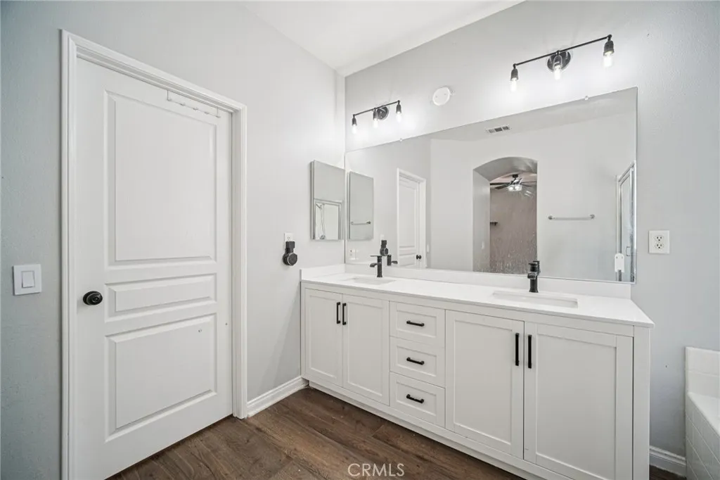 ANOTHER PRICE DROP! Smart, Stylish, and Fully Upgraded Home in Castaic. This exceptional smart home in the highly sought-after Country Village development offers the perfect blend of modern upgrades, sustainable living, and everyday comfort. Featuring extensive infrastructure enhancements, this turn-key residence is ideal for those seeking a move-in-ready home with long-term energy efficiency and smart home features. The owner has made significant investments, including a state-of-the-art "owned" solar power system with 23 panels producing 40kW/day, paired with an EcoFlow backup battery system, new 200 AMP sub-panel, whole-house water softener, Level 2 EV charging station, and recently updated in 2024 hot water heater tank and HVAC system. Step inside to find a light-filled, open floor plan with luxury vinyl plank flooring, custom baseboards, upgraded fixtures, and plantation shutters throughout. The inviting family room features a cozy fireplace and a custom-built media niche, seamlessly flowing into a chef-inspired kitchen with a spacious quartz center island, soft-close cabinetry, and oversized black hardware. Upstairs, a custom-built two-person workstation with added storage anchors the versatile loft area. The primary suite impresses with a large walk-in closet and a beautifully upgraded en-suite bath with quartz dual-sink vanity, soaking tub, and separate shower. Additional bedrooms are generously sized, including one with its own walk-in closet. The guest bath includes a newer tub/shower combo, quartz vanity, updated mirror, and modern lighting. Convenient upstairs l