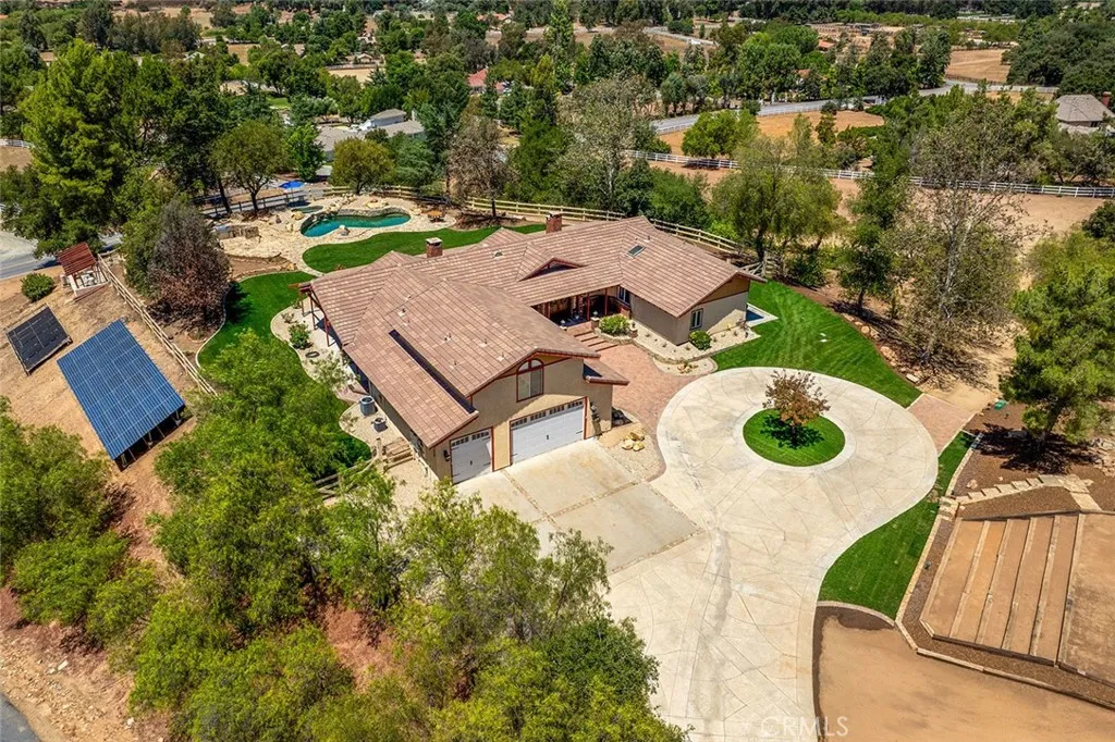 SINGLE-STORY LA CRESTA ESTATE WITH POOL, VIEWS, 1-BEDROOM APARTMENT AND ROOM FOR EQUESTRIAN FACILITIES, DIRT TRACK, AGRICULTURE, ADU This updated home, located on a lovely, central La Cresta cul de sac checks so many boxes: Easy location; Big views; Single-level; Income-producing guest apartment; Private water well; Saltwater pool/spa; Large lawn; Paid-for solar, Mature trees; Massive cleared acreage - large enough for Barn, Pasture, Arena or use the land for vineyard/orchard, kids playground or future ADU/guest house. The single-level 3011 square foot 4 bedroom/3 bathroom main house has a wonderful layout, including a big family kitchen in the heart of the home with gorgeous brick detail, 60-inch professional Wolf range and a kitchen-sink view of the grassy lawn, outdoor kitchen, pool & spa, natural rock detail and sunsets over the Cleveland National Forest. The spacious rooms, especially the primary suite with vaulted ceiling, fireplace & large ensuite bathroom, provide an expansive feeling throughout the home. Your friends and family will love the private freshly painted guest apartment over the garage with its own living room, kitchen with newer appliances, bedroom, full bathroom, HVAC, laundry and dedicated entrance. Explore the option of rental income, as historically, it has generated an average of $2000 per month! The main house, with its charming covered patio, has recent upgrades, including 2 new HVAC units, new pool equipment, garage doors, carpet and paint. Outside, you will find that the grounds are manicured, versatile and stunning! As the house sits at a gen