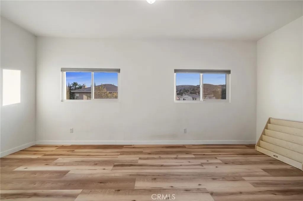 Welcome to this charming 4-bedroom, 3-bathroom, 3,130 sqft home in the desirable Rancho Vista community of West Palmdale. Just minutes from the Antelope Valley Mall, shopping centers, and freeway access, this home offers both convenience and comfort. Enjoy soaring ceilings and newer laminate flooring throughout the main level. The open-concept kitchen features white quartz countertops and a large island, flowing seamlessly into the cozy family room with a modern fireplace, perfect for gatherings and everyday living. Upstairs, the oversized primary suite boasts a private balcony, spacious walk-in closet, and a spa-like bathroom with a roman tub, separate shower, and dual sinks. Step outside to a spacious backyard with a covered patio and a modern shed with electricity, ideal for a home office or creative space. The paid-off solar system is a standout feature that will help you save year-round.Additional perks include two A/C units, Tesla charger, epoxy garage flooring, newer windows, water softener and filtration system, and newer exterior paint. This home is ready for you to move in and start making memories! Schedule your private tour today!