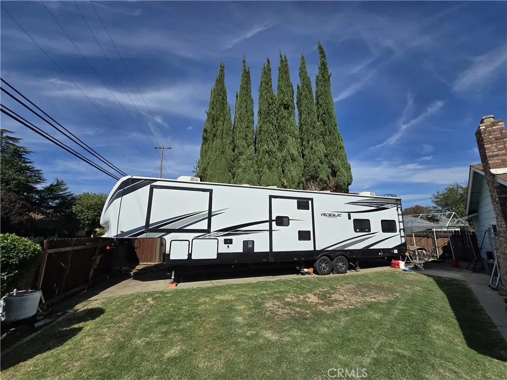 Large lot in a great location! This charming home, just off Olive Ave, sits at the end of a quiet court in an established neighborhood. Offering 3 bedrooms, 2 bathrooms, and 1,862 sq. ft. of living space, it features new flooring in the kitchen, family room, and hallways, with carpet in the bedrooms. The family room is warm and inviting with a cozy fireplace and built-in shelves. The standout of this property is the large 10,000+ sq. ft. lot. The backyard is perfect for entertaining with a covered patio, horseshoe pits, and an outdoor fireplace. Additional highlights include RV parking with backyard access from the main court, plus two double gates along the back fence providing direct access to Olive Ave. Dont miss out on this fantastic opportunity!