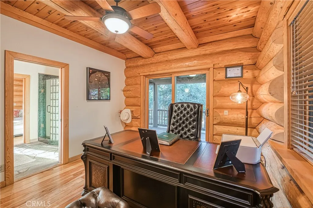 //World bid Auction - October 8th 2025 Noon. Bidders within the top 50% by price will be notified to submit the Final sealed bid on October 9th 2025 and their Final bid is due no later than October 9th Noon 2025. The Successful Bidder will be notified on October 9th 2025 no later than 3pm they have been awarded the Property. Buyer's may obtain financing, though financing is not a contingency to close. Proof of funds to close and/or a lender's approval letter are required with your bid. You may conduct your inspections anytime// An extraordinary 40+/- ac ranch retreat where Canadian Blue Spruce log construction meets timeless craftsmanship and modern comfort. Tucked inside a private, gated community just 25 minutes from Clovis, this one-of-a-kind estate offers the rare opportunity to live on land without sacrificing luxury. The main residence spans over 4,200 sq. ft., featuring 5 spacious bedrooms and 4.5 baths, plus a detached ADU above the oversized 4-car garage perfect for multigenerational living or guest stays. Soaring wood-beamed ceilings, river rock fireplaces, and handcrafted details throughout evoke the warmth of a mountain lodge. Outdoors, a fully stocked fishing pond, fenced garden with raised beds, and covered livestock barn make this a true rancher's paradise. An inground spa and stone patio with a built-in outdoor kitchen and fire pit invite you to entertain under the stars. With panoramic views of Table Mountain and endless room to roam whether horseback riding, off-roading, or simply enjoying the sunset this property is ideal for hobby ranchers, outdoor enthu