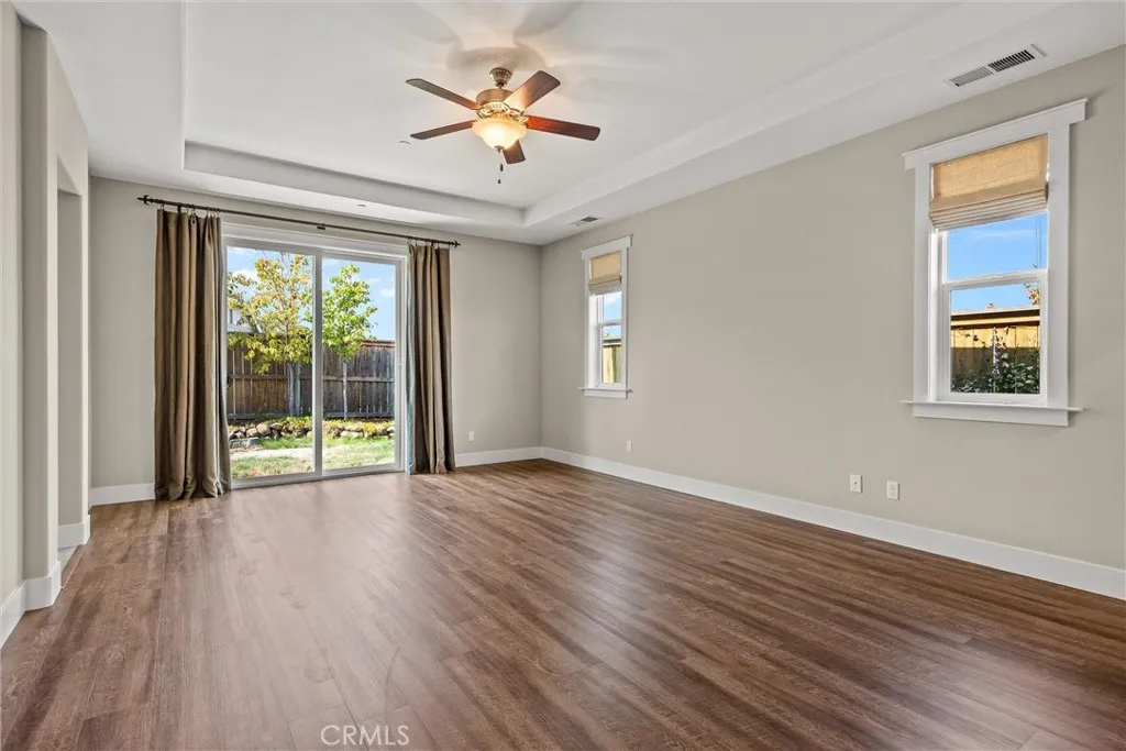 This premium lot offers an unparalleled opportunity to embrace the tranquility of nature. Imagine starting your day on the front patio, sipping your morning coffee as you take in the breathtaking panorama of the meadow stretching out before you, framed by the surrounding mountains. Watch the clouds drift lazily across the valley, painting ever-changing scenes in the sky. Beyond its serene setting, this property offers a prime location that caters to an active outdoor lifestyle. With Hancock Park, Wildwood Park, and Upper Bidwell Park all conveniently nearby, you'll have a wealth of recreational opportunities at your fingertips. Explore countless scenic walking and biking trails, perfect for leisurely strolls or invigorating runs. For the more adventurous, the rugged terrain offers exciting mountain biking experiences. Equestrian enthusiasts will appreciate the proximity to horseback riding trails. This home has been lightly lived in and feels like new. Large windows fill the space with natural light and offer views of the beautifully landscaped, low-maintenance yard. It boasts a highly desired open floor plan, perfect for entertaining and comfortable living. The great room features a gas fireplace, which is enjoyable from both the kitchen and dining areas. The kitchen is equipped with upgraded double ovens and a five-burner cooktop. A spacious laundry room adds to the home's convenience. This spacious home boasts a well-designed layout with 4 bedrooms and 3 baths, providing ample living space for families. With fall just around the corner, you'll surely enjoy the 2021 hot t