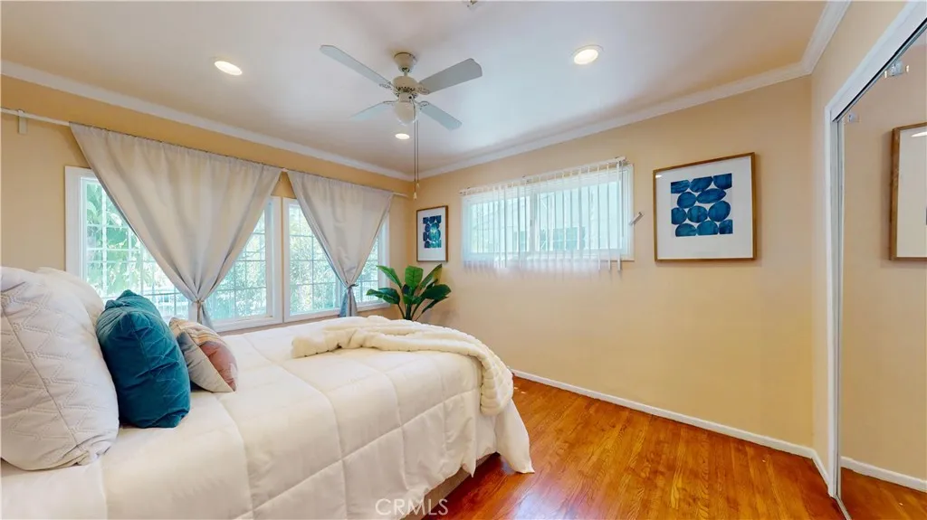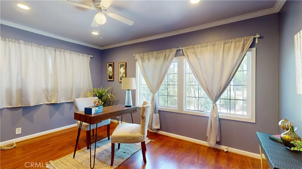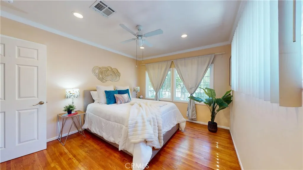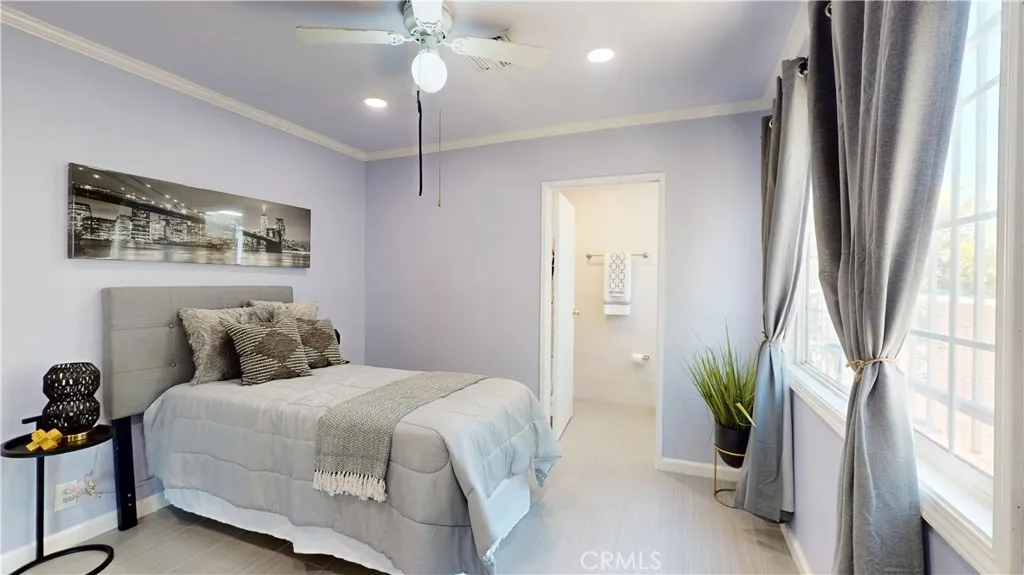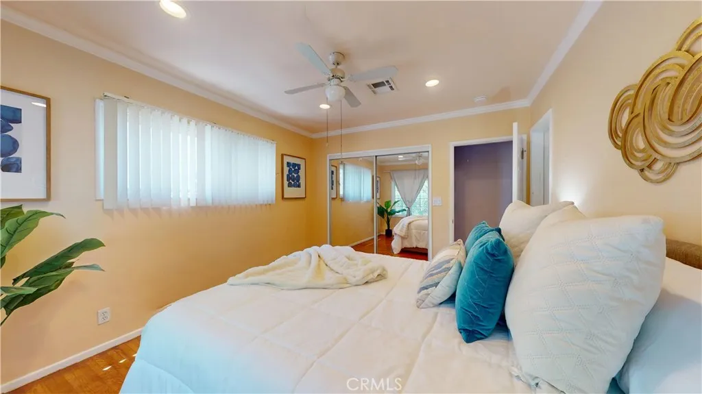 This spacious single-family home offers 5 bedrooms and 4 bathrooms, including a permitted garage conversion into a recreation room with its own private entrance from the alley, a bathroom, and direct access to a two-car carport. The main house features 4 bedrooms and 3 bathrooms with an open-concept kitchen remodeled with granite countertops, refinished hardwood floors, marble and laminate flooring, recessed lighting, dual-pane windows, central heat and air, and every bedroom with direct bathroom access. Recent upgrades include a new roof with paid-off solar (13 panels, 2016), a new HVAC system (2017), and an updated electric panel. With flexible living options perfect for multi-generational families, rental potential, or group living, this home offers exceptional value with a fenced yard, ample storage, and a prime layout thats both practical and versatile.