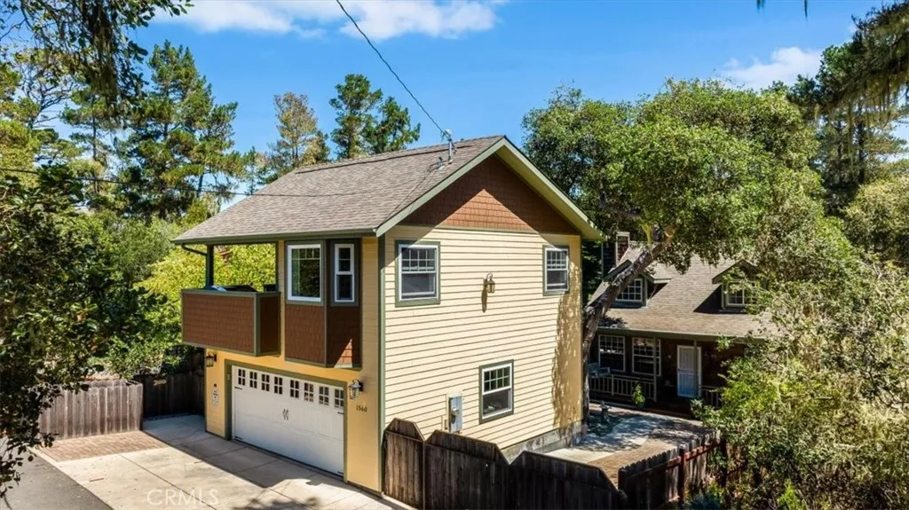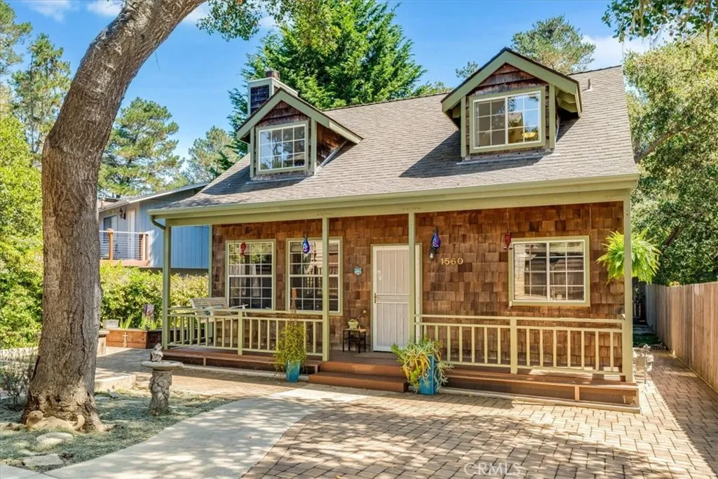 Located in a quiet corner of Lodge Hill in the village of Cambria, just steps from the Fiscalini Ranch Preserve, is this fully updated and maintained home with 3 bedrooms and 2 bathrooms, plus a 508 sq ft guest quarters that has been a licensed air bnb for years! The 624 sq ft garage has space for your cars and plenty of room for shop projects. The courtyard between buildings offers privacy and a gas fire pit for relaxing conversations under the stars. Inside the home you find an open plan with beautiful wood floors, a fireplace in the living room and beautiful hardwood cabinetry in the updated kitchen including stainless appliances. Window treatments are also tasteful and top of line. One bedroom is on the lower level so single level living works. A sunroom off of that bedroom allows for enjoying the outdoors in any weather. The full length front porch is another comfy spot for enjoying Cambria's outdoors. The guest quarters has kitchenette, full bath, walk in closet, vaulted ceiling, and a great porch for sitting and taking in the treetop views and the coastal range in the distance. It also has a mini split for AC and heating. The garage is equipped with three 220 outlets, optional laundry space, and natural gas so you are ready for any project! The oversized property is fenced, has hardscape with pavers, 40'+ RV parking inside fence, welded steel post/gates, spa pad with power, graceful oak trees... your own peaceful compound, and in moments you can be on a forest trails leading you to undeveloped bluffs at ocean's edge.