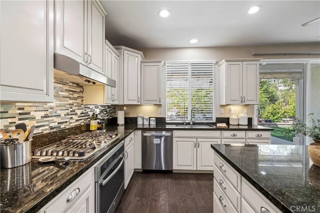 Located in the prestigious gated community of West Hills, Monument Collection and designed with a highly sought-after Next Gen floorplan, you'll find this stunning 5-bedroom, 5-bath home complete with attached 1 bed-1 bath CASITA that includes kitchen and laundry. From the moment you arrive, the romantic Spanish architecture makes a lasting impression. A gated breezeway, accented with wrought iron and Spanish tile, leads to the main entrance, while a separate exterior entrance provides a private yard and direct access to the Casita. The Casita is also accessible from inside the home, making it an ideal retreat for multi-generational living, guests, or extended stays. Recently remodeled, the Casita showcases luxury vinyl plank flooring, a skylight with automatic shade, a new kitchen featuring custom cabinetry, glass tile backsplash, and Corian counters. The remodeled bathroom features a walk-in tile shower, custom vanity, and stylish flooring. But wait, the main home is also a show stopper and perfectly blends beauty and versatility too! The first floor of the main home offers the convenience of a bedroom and attached full bathroom plus a nearby half bath. You'll also find an expansive kitchen with eat in dining area that opens seamlessly to the family room, highlighted by a cozy fireplace and custom built-in bookcasesan ideal space to relax. Formal dining room provides an additional entertainers space. Upstairs, youll find four additional bedrooms plus an enclosed bonus room, perfect for a den or office (no closet). Two of the upstairs bedrooms serve as primary suites, each
