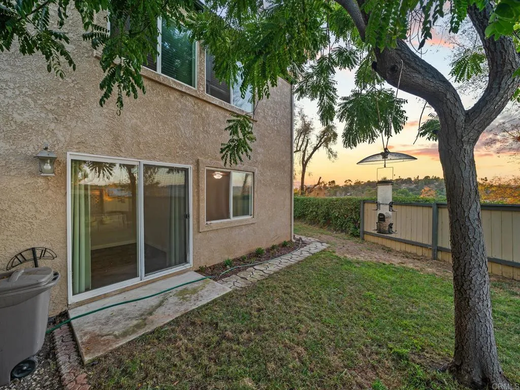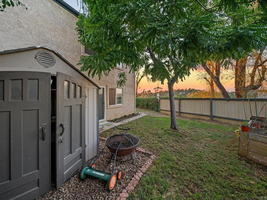 Welcome to your ideal first homea beautiful 2-bedroom, 1-bath with a rare, oversized private yard! Tucked away for added privacy, this unit features a spacious backyard perfect for kids, pets, or entertaining, plus a convenient storage shed. Inside, you'll find stainless steel appliances, LVP flooring, LED lighting and in-unit laundry for everyday comfort. A sliding glass door connects the indoors with the outdoors, filling the space with natural light and offering peaceful views. The community offers lush landscaping, large lawns, a playground, pool, spa, and even a shared laundry room for added convenience. Less than 5 minutes away from all Downtown Fallbrook has to offer as well!