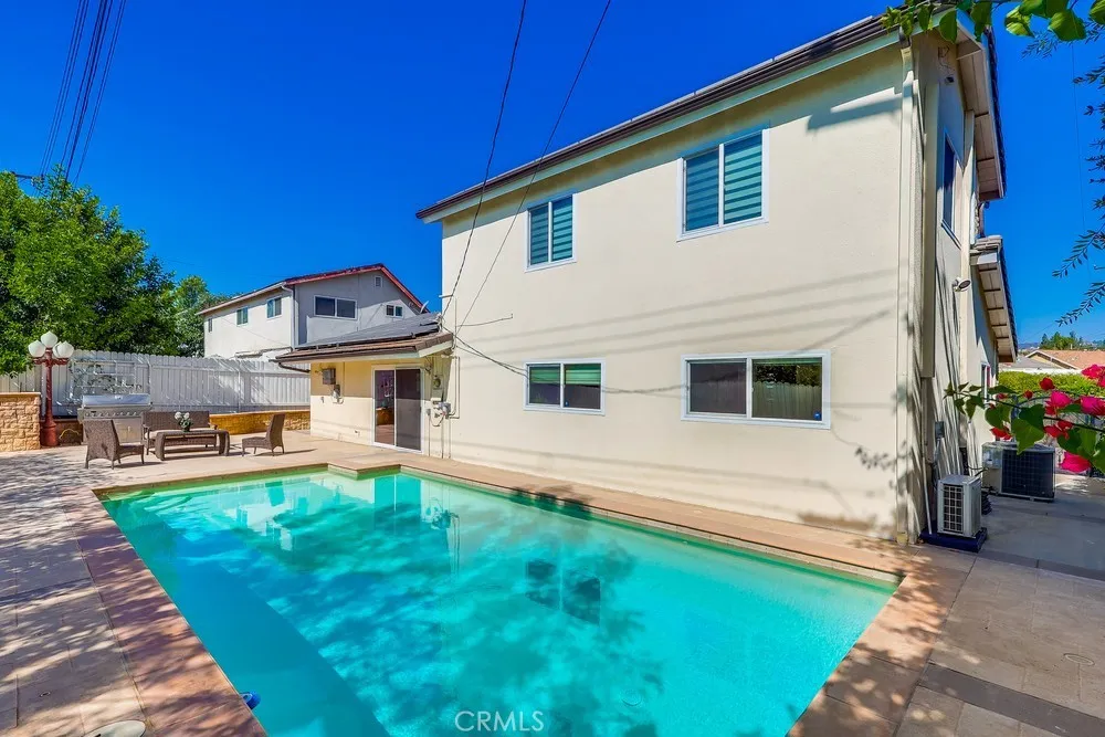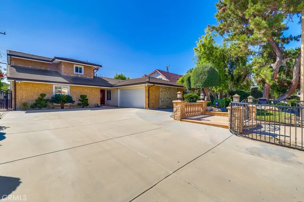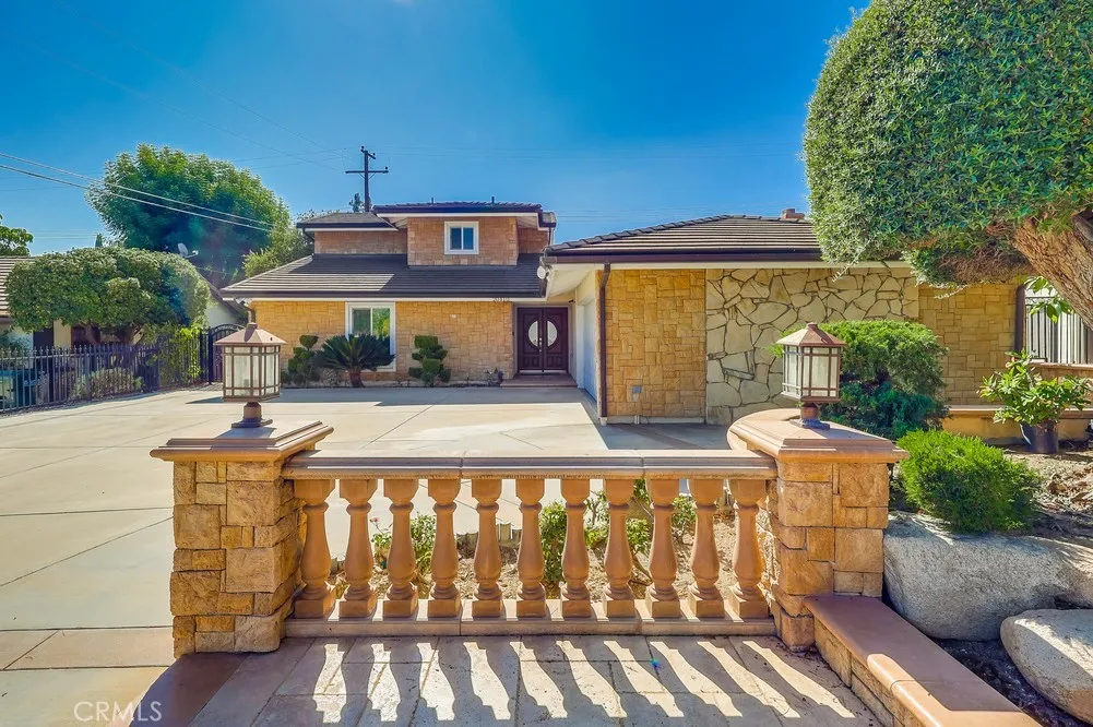 Step into the pinnacle of luxury living with this exceptional residence situated in the Walnut school district. Meticulously upgraded and beautifully landscaped, this 4 bedroom (dual primary suites), 3 bath home is one of the prettiest house in the neighborhood. A wrought-iron gate, zen garden and gorgeous stone veneer announce the stately driveway entrance, which has been thoughtfully designed to accommodate RV and guest parking. Double door opens to a large living room anchored by a fireplace, a built-in beverage bar, and recessed lighting, perfect for everyday living and sophisticated entertaining. Kitchen features upgraded cabinetry with glass cabinet display doors, built-in wine rack cabinet, granite countertop, and an adjacent laundry room. Entertain effortlessly in the eat-in kitchen with sliding door to reveal views of the backyard sanctuary. The main level includes 3 bedrooms and 2 fully remodeled baths. One of the bedroom is the downstairs primary bedroom suite with 2 closets, and the second bedroom is currently used as an office. Upstairs, the upstairs primary bedroom suite offers a serene retreat with wall AC and an indulgent remodeled bathroom with jacuzzi tub and separate shower, delivering a spa-like experience at home. Outside, intelligently designed backyard paradise showcases pool, BBQ grill, travertine flooring and tiered fruit-trees garden connected by a walking path behind the white fences area, perfect for outdoor entertaining. Additional upgraded amenities include PAID-off 20 Solar panels, wall AC in upstairs masters suite, upgraded window coverings,