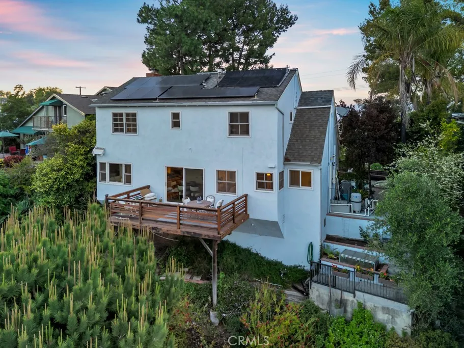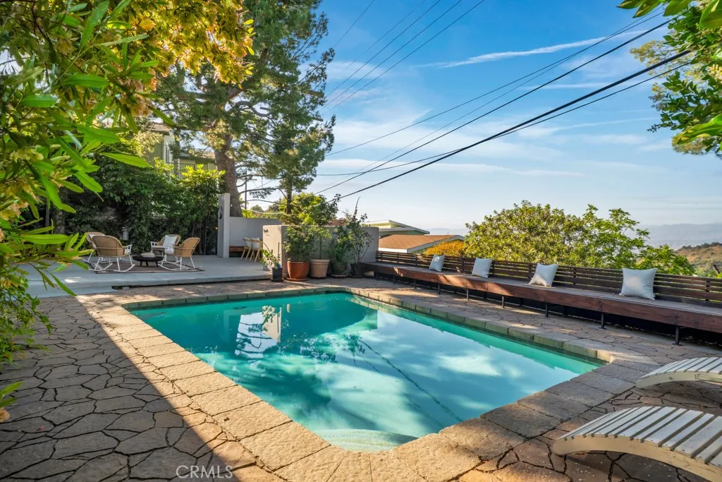 Rare. Iconic. Unforgettable. Nestled on a quiet, private street in legendary Laurel Canyon, this beautifully updated Cape Cod-style pool home blends classic charm with modern upgrades, offering a rare opportunity to own a true Hollywood Hills gem. With 3 bedrooms and 3 bathrooms, this spacious retreat delivers the perfect balance of privacy, character, and comfort for both everyday living and unforgettable entertaining. From the moment you arrive, youre welcomed by an impressive entertainers front yard featuring a sparkling pool, custom bench seating, and a stunning pavered deckideal for lounging, hosting guests, or basking in the California sun. A peek of the Hollywood Sign adds an iconic touch to the serene canyon setting. Inside, refinished original hardwood floors and an open, airy layout set the tone for refined yet relaxed living. The formal living room flows effortlessly into a sunlit dining area, which opens to an oversized balcony with sweeping canyon views. The updated kitchen features granite countertops, stainless steel appliances, and a cozy breakfast nookperfect for casual mornings or evening conversations. The main-level bedroom offers a private ensuite with stylish pebble flooring. Upstairs, the primary suite is a luxurious escape, featuring a spa-inspired bathroom with a custom soaking tub, lava rock steam shower, cedar-lined walk-in closet, and a private balcony. A third bedroom offers generous space and tranquil window views, ideal as a guest room, home office, or creative studio. Step outside to explore a terraced backyard complete with multiple levels a