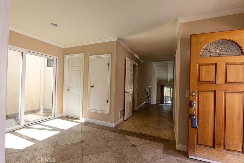 Highly sought after model in Fairway Village! End unit with 3 bedrooms 2 bathrooms with approximately 1572 sq ft. Updated kitchen with stainless appliances granite counters and stone flooring. Other features include, double door formal entry, Cathedral ceilings, ceiling fans, and built in cabinet in guest room. The Primary bedroom is located on the lower level with ensuite bath, with dual sinks, walk in closet and and large walk in shower with a private balcony. There is new carpet in the bedrooms and fireplace in living room with sliding door to the large balcony. Convenient 2 car attached garage and plenty of guest parking. This secure community has a 24 hour guard at the gate, and many HOA amenities to include pool, spa, clubhouse, pickle ball ,tennis courts, and meandering greenbelts. Located close to St Jude Hospital and the vibrant life of Downtown Fullerton. Won't last!
