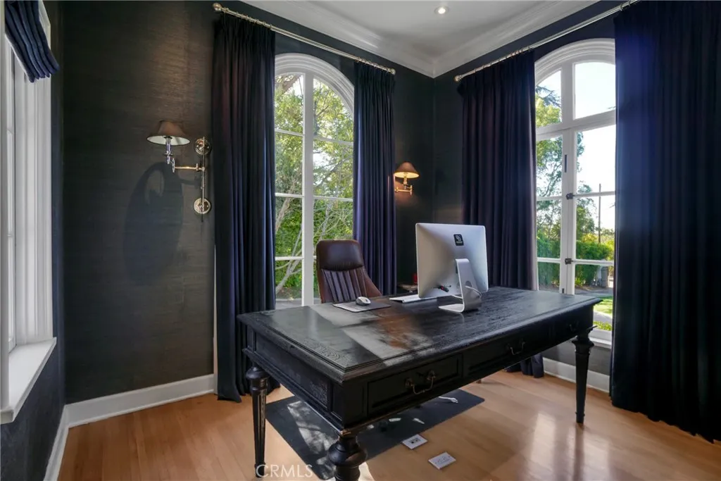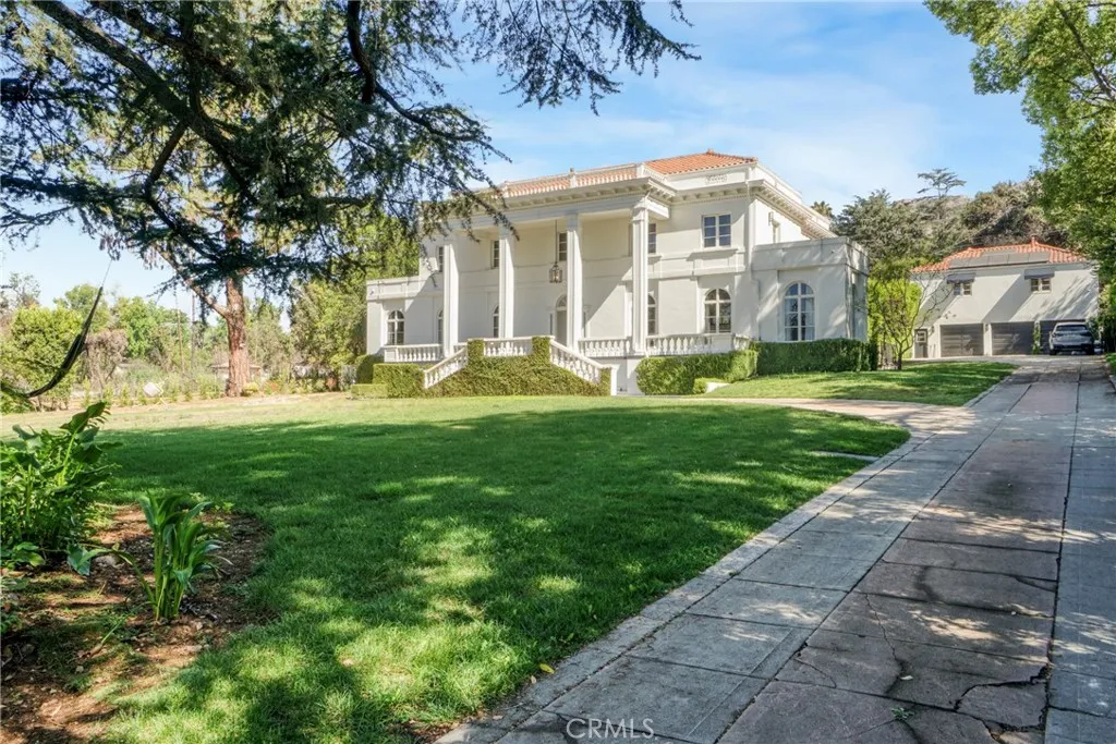 Timeless 1925 Beaux Arts Revival Luxury Estate Welcome to this extraordinary gated estate, a rare jewel blending early 20th-century Beaux Arts Revival architecture with modern luxury. Nestled on nearly 30,000 square feet of flat, landscaped grounds, this magnificent residence offers over 6,172 square feet of living space across the main home, guest quarters, and newly added ADU, creating the ultimate private compound for entertaining, or multigenerational living. Passing through the dual electronic gates and circular driveway, you are welcomed by a dramatic faade that sets the tone for the grandeur within. Enter through the stately front door into a two-story foyer, highlighted by an elegant Y-shaped staircase and soaring ceilings, where 4,350 square feet of light-filled, open living space awaits. The first floor features: A spacious bedroom/office with adjacent bathroom. A grand living room with fireplace. A formal dining room perfect for hosting. A library/family room with fireplace. A gourmet chefs kitchen, outfitted with commercial-grade Viking appliances. Upstairs, find four generous bedrooms and three baths, centered around a curved open landing. The primary suite is a private retreat with a spa-inspired, upgraded bath and a luxurious, custom walk-in closet. High ceilings, intricate crown molding, and central air & heat throughout elevate the homes timeless character. The outdoor spaces are an entertainers dream. The estates manicured grounds showcase a sparkling swimming pool, a tranquil water fountain, an outdoor fireplace, and a built-in barbecue area. With ov