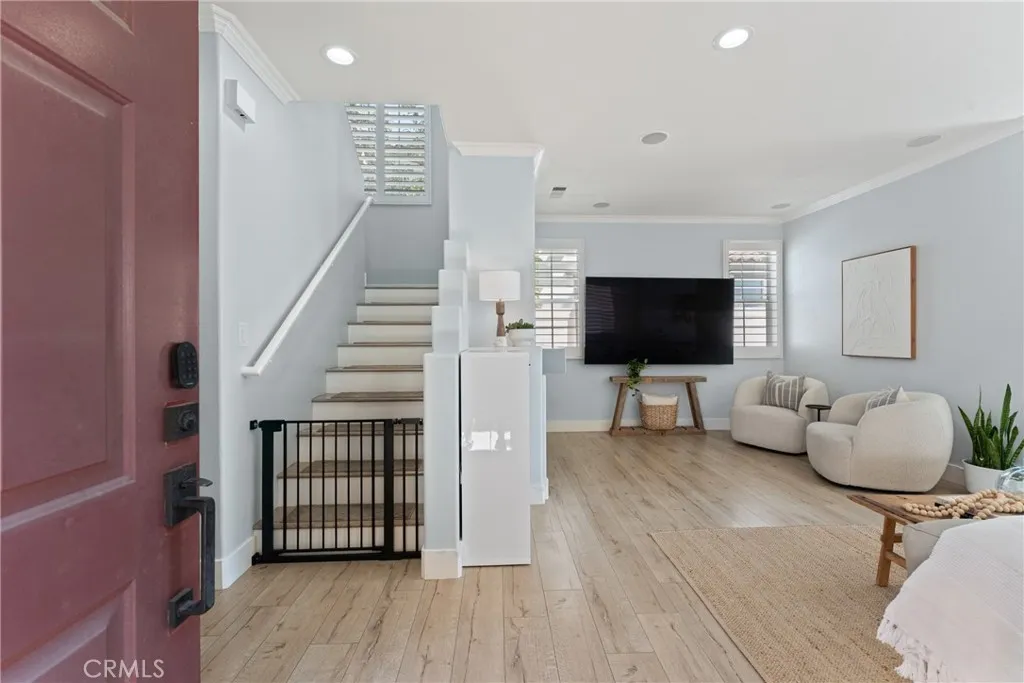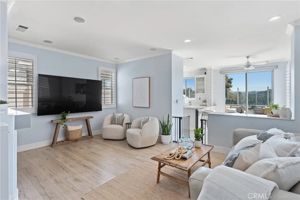Welcome to this beautifully updated 3 bedroom, 2 1/2 bathroom detached home nestled in the desirable gated community of Flores Los Alisos. Boasting breathtaking mountain and hillside views, this home offers a perfect blend of modern upgrades and serene outdoor living. Step inside to find wooden plantation shutters, recessed lighting, and modern ceiling fans throughout. The cozy fireplace, quartz kitchen countertops, and sleek interior doors enhance the homes contemporary charm. A built-in wine fridge adds a touch of luxury, perfect for entertaining. Enjoy alfresco dining on the wraparound patio complete with a built-in gas line for grilling, all while taking in the scenic mountain views. The location is unbeatable, just a short walk to Aliso Canyon Community Park. This home is fully upgraded for comfort and convenience, featuring smart home technology including a Nest thermostat and Simplisafe locking system. The property has also been re-piped, providing added peace of mind for years to come. Dont miss your chance to own this turn-key home in a peaceful, gated enclave surrounded by nature.