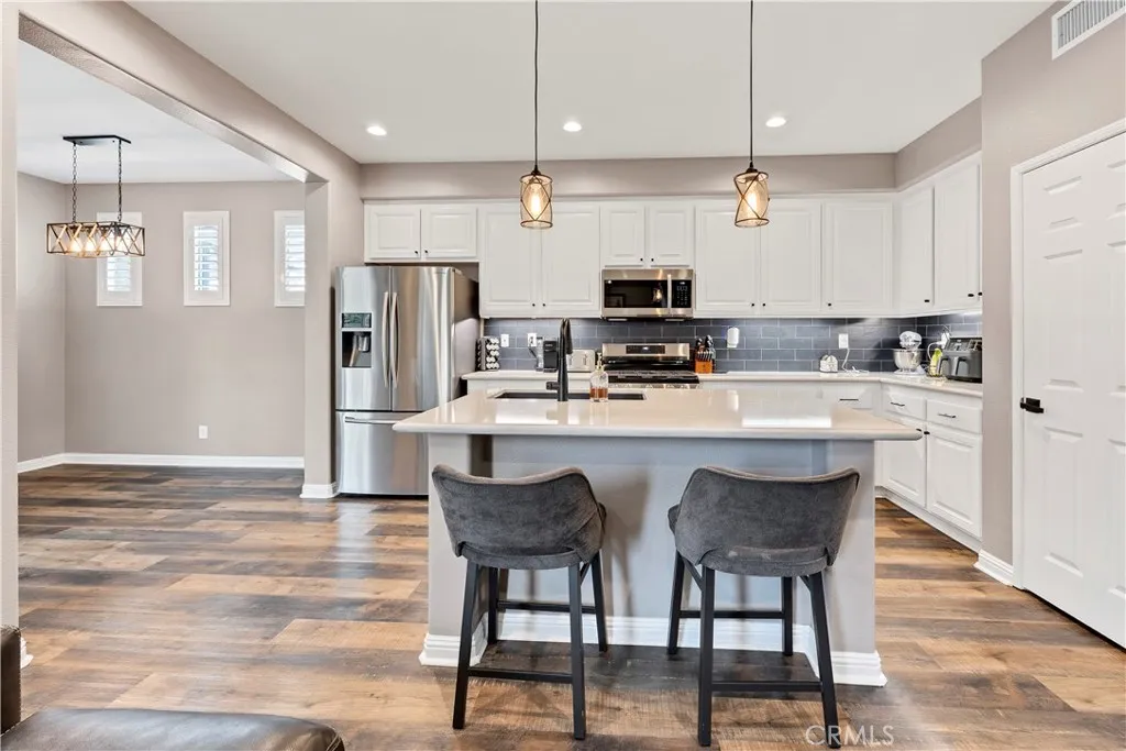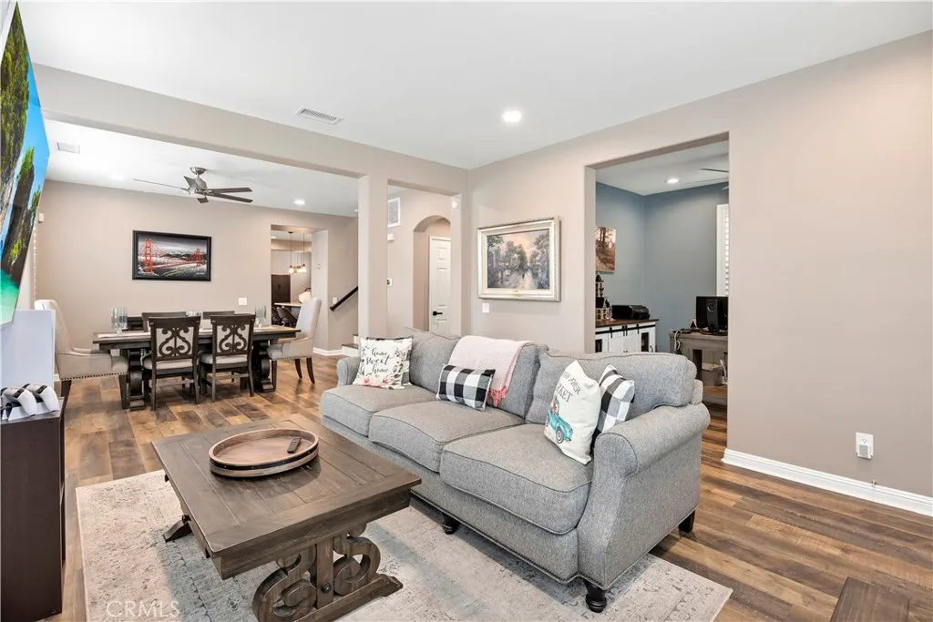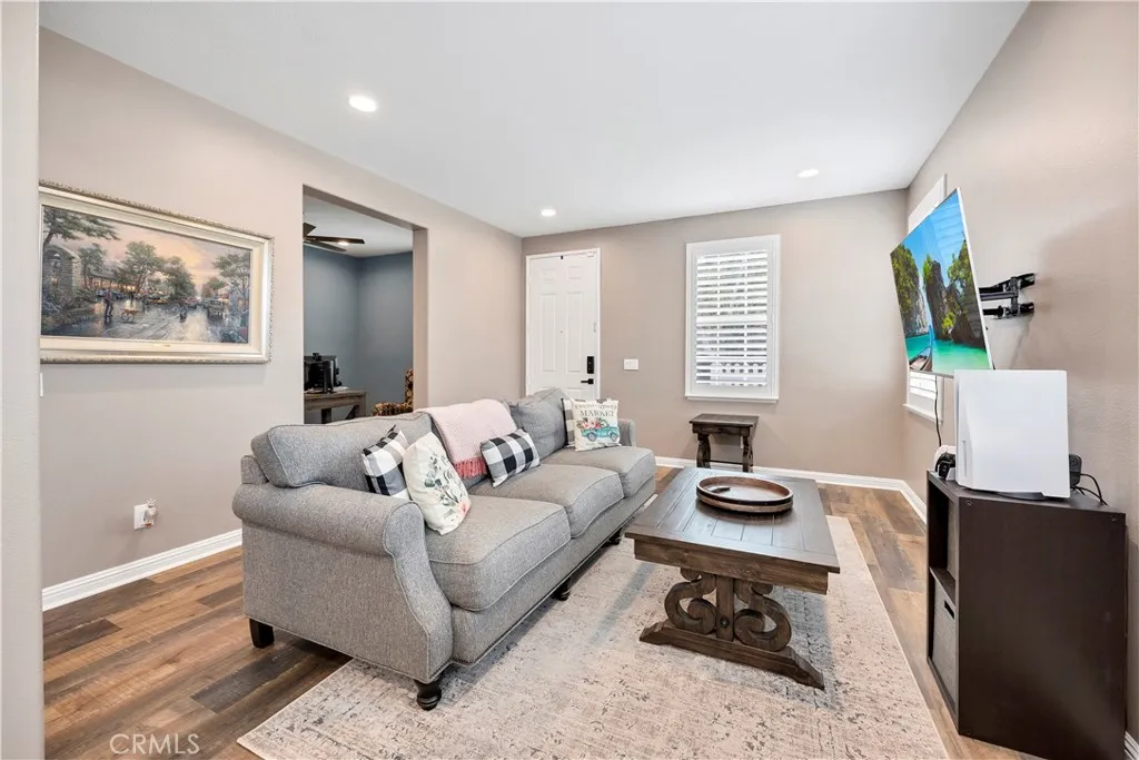 Seller offering credit toward buyers interest rate buy down or closing costs! Welcome to this beautifully maintained two-story home, perfectly positioned on a desirable corner lot in the sought-after Harveston communityjust steps from the lake! Freshly painted on the exterior, this 4-bedroom, 2.5-bath residence also includes a versatile downstairs office that can serve as a 5th bedroom, offering both flexibility and curb appeal. Step inside to find luxury vinyl plank flooring and plantation shutters throughout, creating a warm and inviting ambiance. The spacious, upgraded kitchen features quartz countertops, ample cabinetry, a center island with pendant lighting, a farmhouse sink, and a walk-in pantryideal for everyday living and entertaining. The kitchen opens seamlessly to the cozy family room with ceiling fan and fireplace, while a separate formal living room and dining room provide additional space for gatherings. A convenient half bath completes the first floor. Upstairs, the primary suite is a peaceful retreat with an upgraded bath boasting dual sinks, an extended shower, and a generous walk-in closet. Two additional bedrooms and a full bath round out the second level. The laundry area is thoughtfully located off the garage for easy access. Additional upgrades include a QuietCool whole house fan for energy savings. Outside, enjoy a private side patio with alumawood coverperfect for outdoor dining or relaxing. An attached two-car garage completes this well-cared-for home. Harveston is one of Temecula's most desirable communities, favored by so many for the amenities, o