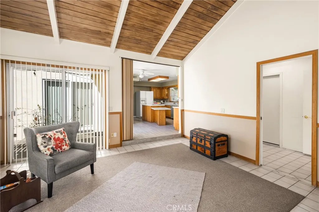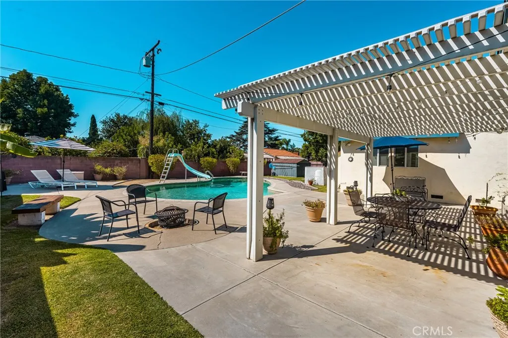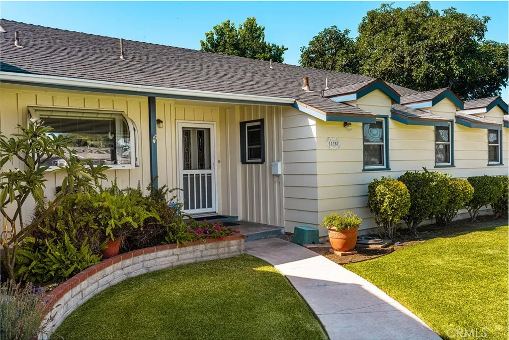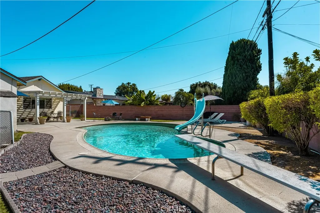 Welcome to this stunning, spacious single-story ranch-style pool home located in the highly sought-after neighborhood of East Garden Grove. Nestled on a sprawling 11,832 sf lot, this 2,200+ sq. ft. residence offers a blend of comfort, convenience, & modern charm. The front yard showcases beautiful curb appeal with a large Brazilian Pepper shade tree & lush grassy area. You'll be greeted by the warm ambiance of the original oak hardwood floors that span the bright & airy living room. A brick-faced fireplace with a built-in wood box & additional storage adds a classic touch to the space, creating an inviting space for family gatherings & cozy evenings. The well-appointed kitchen features rich wood cabinetry, new dishwasher, & a picturesque garden window framing views of the neighborhood. The central island, with its convenient breakfast bar & built-in storage, serves as both a prep space & gathering spot. The separate rear family room is a perfect retreat, whether used as a cozy space for family time or an entertainment hub. The room features a secondary brick fireplace with a raised hearth & open wood beam ceilings offering an additional space to relax & unwind. With direct access to the backyard plus an attached 3/4 bath with private side entrance, this room could also serve as a separate guest suite or mother-in-law unit, complete with storage area that could be easily converted into a kitchenette. The 3 spacious bedrooms provide the ideal setup for restful nights. The primary suite boasts an attached bath with a walk-in shower & pedestal sink. Dual mirrored door closets &