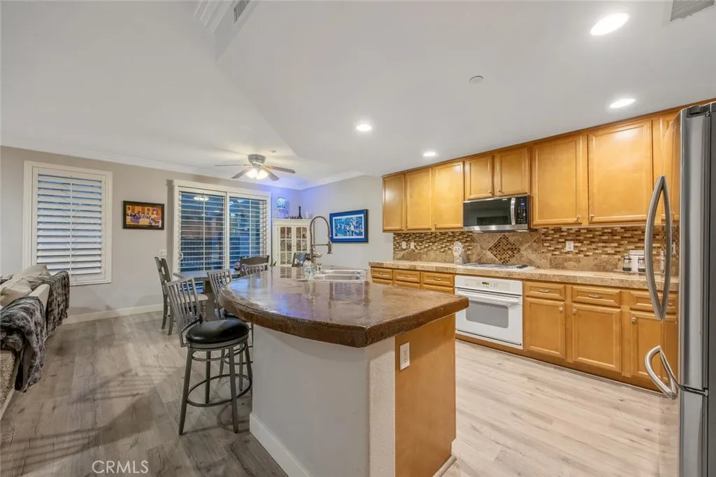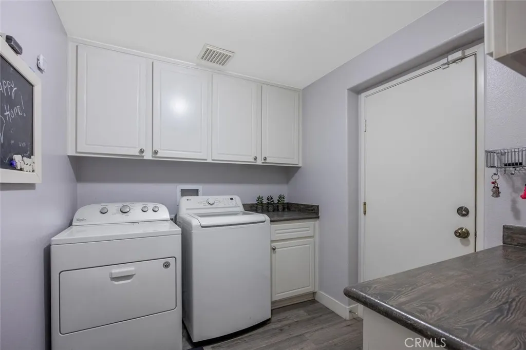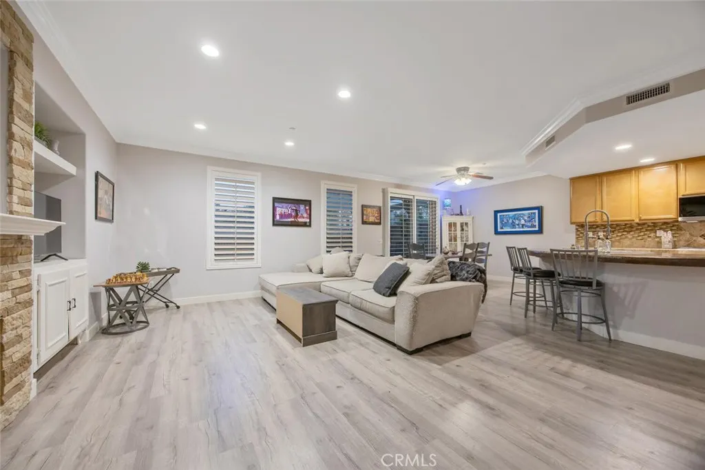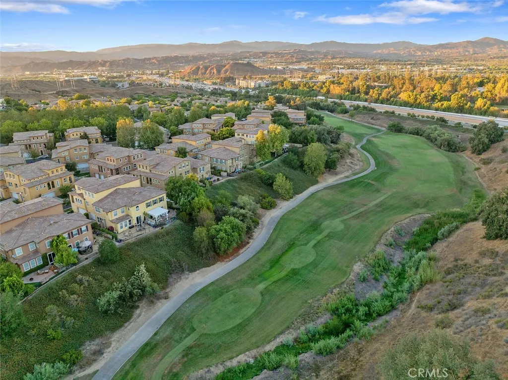 Discover the perfect blend of luxury, privacy, and location in this stunning three bedroom 2.5 bath townhome situated in the most desirable spot within the Cypress Point community in Westridge, Stevenson Ranch. This beautiful home offers a peaceful retreat, backing directly onto the golf course for breathtaking and serene views. Step inside to an inviting open floor plan, where updated luxury vinyl plank flooring in a chic "Weathered Oak" finish flows seamlessly throughout. The home exudes a refined, luxe feel with elegant 4-inch plantation shutters, crown moulding, and 4-inch baseboards. The gourmet kitchen is a chef's dream, featuring a large island with unique glazed cement countertops, a modern glass tile backsplash, and newer stainless steel appliances, including a Samsung refrigerator. A ceiling fan in the dining area provides extra comfort. For convenience, a powder room (1/2 bath) is perfectly situated on the first floor. All plumbing fixtures have been updated to a stylish brushed nickel finish. The spacious family room is perfect for relaxing, complete with a cozy fireplace featuring custom stacked stone. This home offers three generously sized bedrooms, each equipped with a ceiling fan and mirrored closet doors. The primary suite is a true sanctuary, boasting a large walk-in closet with a custom built-in organizer system, complete with shelving and drawers. Additional modern conveniences include an attached 2-car garage with an EV charger (220 volts). Practicality meets style with a dedicated laundry room featuring tons of storage cabinets, an included smart LG W