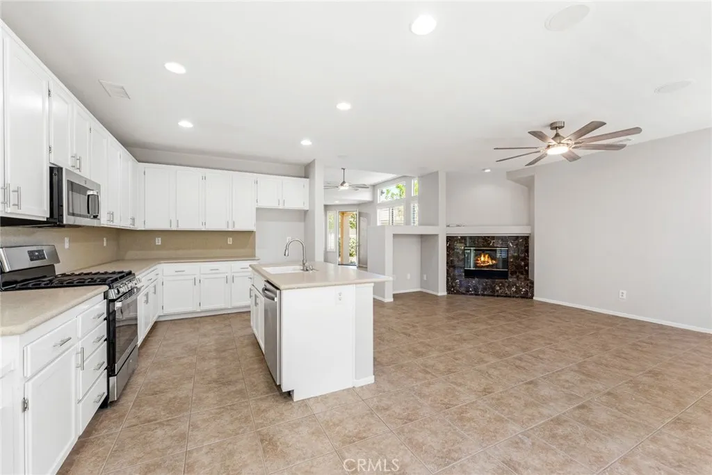 Move-In Ready! Newly Updated Home in The Oasis 55+ Community. Beautifully maintained 2,085 sq. ft. home with fresh interior paint, new carpet, new light fixtures, new ceiling fans, new plumbing, new appliances, and a new garage door opener. Bright open layout with clerestory windows, tile flooring, and an inviting glass front door entry. The kitchen features a center island, ample cabinetry, breakfast nook, and flows into the family room with vaulted ceilings and a cozy fireplace. Primary suite includes a walk-in closet, dual vanities, soaking tub, and separate shower. Second bedroom with private en-suite plus an office/den, guest bath, and indoor laundry. Fully fenced yard with patio cover and 2-car garage. The Oasis offers staffed security gates, resort-style amenities, and a vibrant social lifestyle!