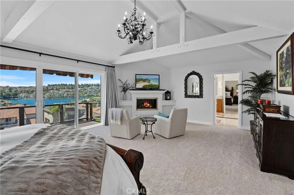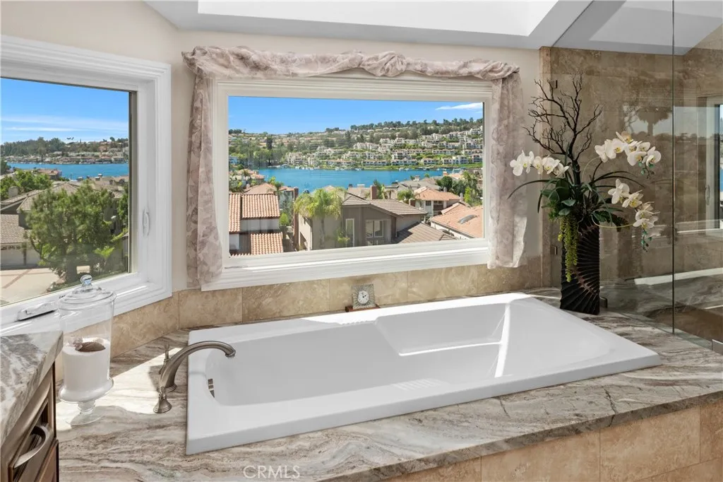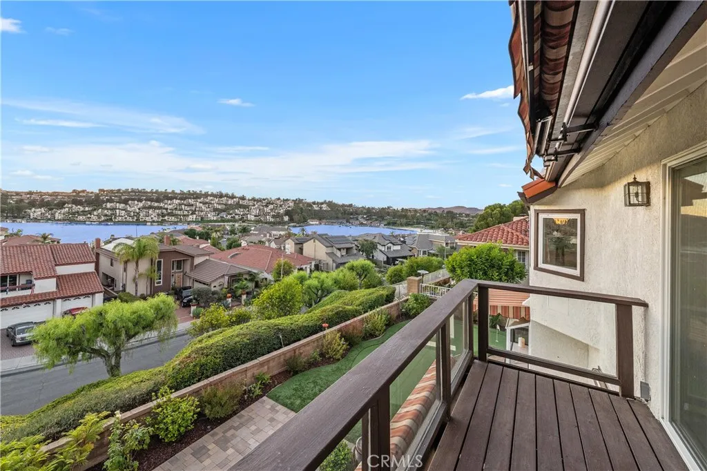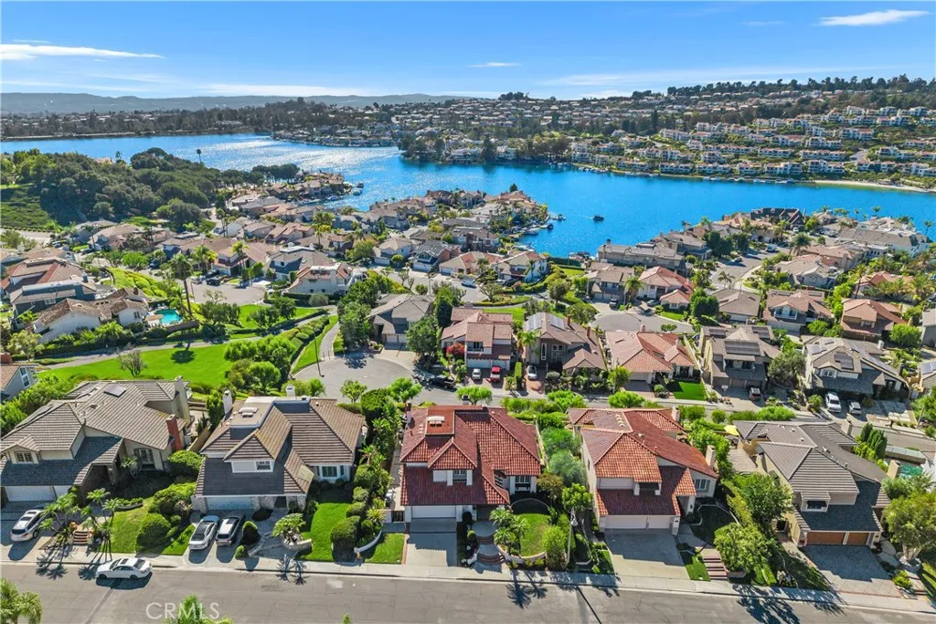 Magical sweeping panoramic views overlooking Lake Mission Viejo that will take your breath away! This is an extraordinary once in a lifetime opportunity to own picturesque sweeping panoramic and unobstructed big water views of Lake Mission Viejo, from end to end, making this arguably one of the best views in all of Andalusia! Perched high above the lake, this elevated lot has professionally crafted grounds, including exquisite landscape, hardscape, putting green and patio for extraordinary enjoyment of the sweeping views. Just a short walk to the lake, this beautifully customized Puerta Vallarta has been remodeled on a luxurious high level making it an entertainers dream with a light and open floor plan boasting 2,762 (approx.) square feet of high quality living space. Taking the first few steps into the entry foyer, you will immediately sense the open volume feeling with tall soaring ceilings, a spacious formal living room which is immediately adjacent to the formal dining room. The kitchen is custom crafted with a meticulous attention to detail, offering an abundance of luxurious features of the highest quality, including custom cabinetry, stainless steel Wolf appliances, super high end Machiaro Dolomite stone countertops, breakfast nook and enjoys a gorgeous lake view! The kitchen opens to a sprawling family room with custom doors which open to the rear yard. There is a completely remodeled full bathroom and laundry room downstairs. The staircase leads upstairs to a massive primary suite, finished as a sanctuary of luxury, offering a spa inspired bathroom, warm fireplace