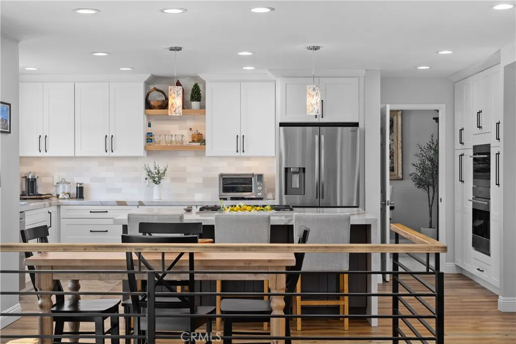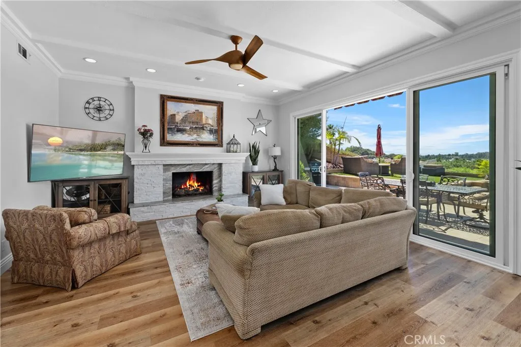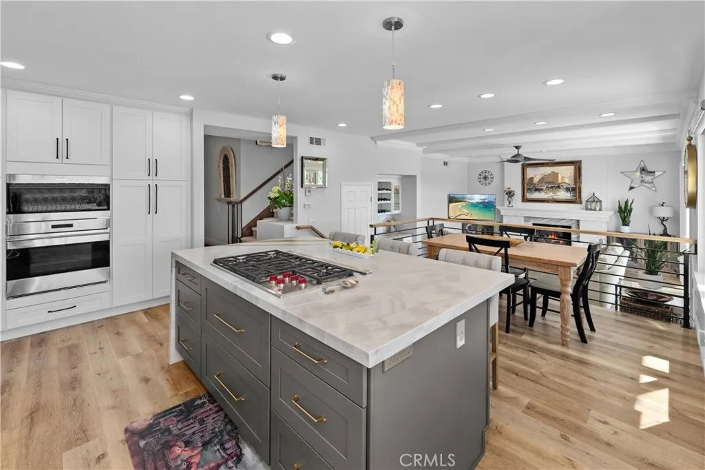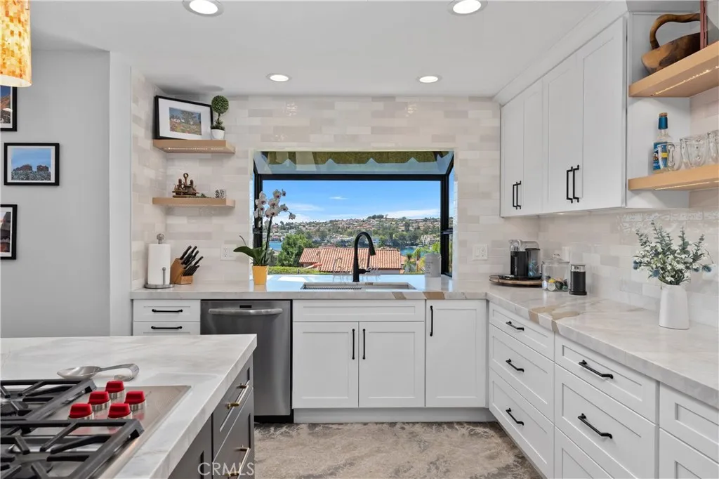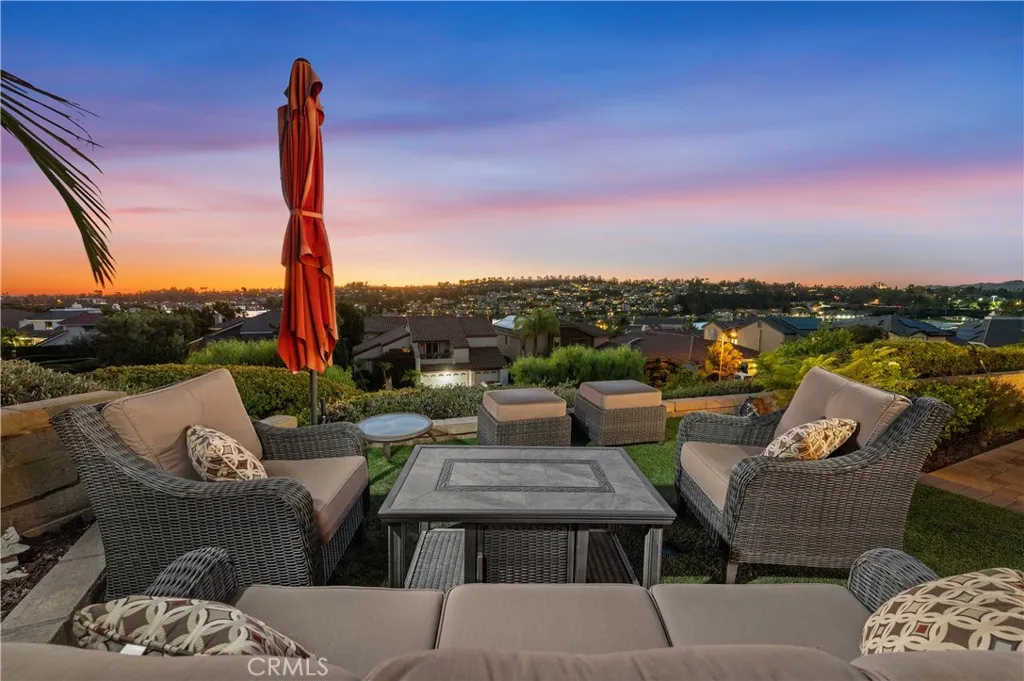 Magical sweeping panoramic views overlooking Lake Mission Viejo that will take your breath away! This is an extraordinary once in a lifetime opportunity to own picturesque sweeping panoramic and unobstructed big water views of Lake Mission Viejo, from end to end, making this arguably one of the best views in all of Andalusia! Perched high above the lake, this elevated lot has professionally crafted grounds, including exquisite landscape, hardscape, putting green and patio for extraordinary enjoyment of the sweeping views. Just a short walk to the lake, this beautifully customized Puerta Vallarta has been remodeled on a luxurious high level making it an entertainers dream with a light and open floor plan boasting 2,762 (approx.) square feet of high quality living space. Taking the first few steps into the entry foyer, you will immediately sense the open volume feeling with tall soaring ceilings, a spacious formal living room which is immediately adjacent to the formal dining room. The kitchen is custom crafted with a meticulous attention to detail, offering an abundance of luxurious features of the highest quality, including custom cabinetry, stainless steel Wolf appliances, super high end Machiaro Dolomite stone countertops, breakfast nook and enjoys a gorgeous lake view! The kitchen opens to a sprawling family room with custom doors which open to the rear yard. There is a completely remodeled full bathroom and laundry room downstairs. The staircase leads upstairs to a massive primary suite, finished as a sanctuary of luxury, offering a spa inspired bathroom, warm fireplace