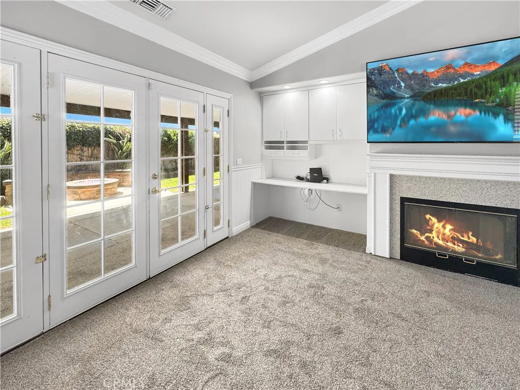 Step into your own private resort with this entertainers dream home, where every detail has been designed to elevate your lifestyle. Imagine sun-drenched afternoons spent around the shimmering Pebble Tec saltwater pool and spa, the soothing sound of a rock waterfall in the background, cool decking under your feet, and friends gathered around the built-in BBQ and bar while an outdoor gas fireplace flickers into the evening. Privacy and beauty surround you with custom stamped and etched concrete, a secure storage area for pool equipment, and a welcoming front courtyard that sets the tone the moment you arrive. The massive driveway provides endless vehicle storage possibilities, including room to park your RV or boat. Inside, light pours through tinted windows onto plush new carpet and luxurious laminate wood floors. The remodeled gourmet kitchen is as stunning as it is functional, with sleek European cabinetry featuring soft-close drawers and pull-outs, LED lighting above and below, granite countertops, a full custom backsplash, and upgraded black stainless Samsung appliancesincluding double oven, refrigerator, microwave, dishwasher, and a gleaming stainless farmhouse sink. In the heart of the home, the family room beckons with crown molding, shiplap wall, wood shutters, built-in desk, cozy fireplace, and an included 75-inch TV. Throw open the French doors and the indoors flow seamlessly to the expansive patio and pool beyond. Solar panels for both the home and pool, a whole-house fan, newer A/C condenser, and tinted windows keep comfort high and costs low. A massive primary